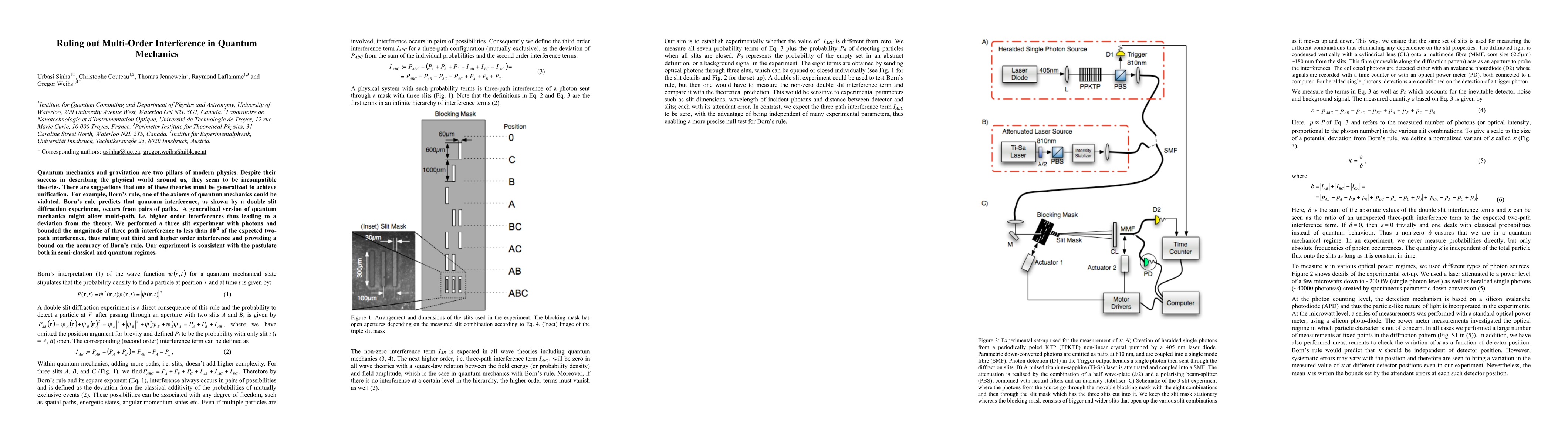 Researchers performed a three slit experiment with photons to test multi-order interference in quantum mechanics, finding evidence that higher-order interferences occur at extremely low levels (<10^-2) of expected two-path interference, ruling out such deviations.