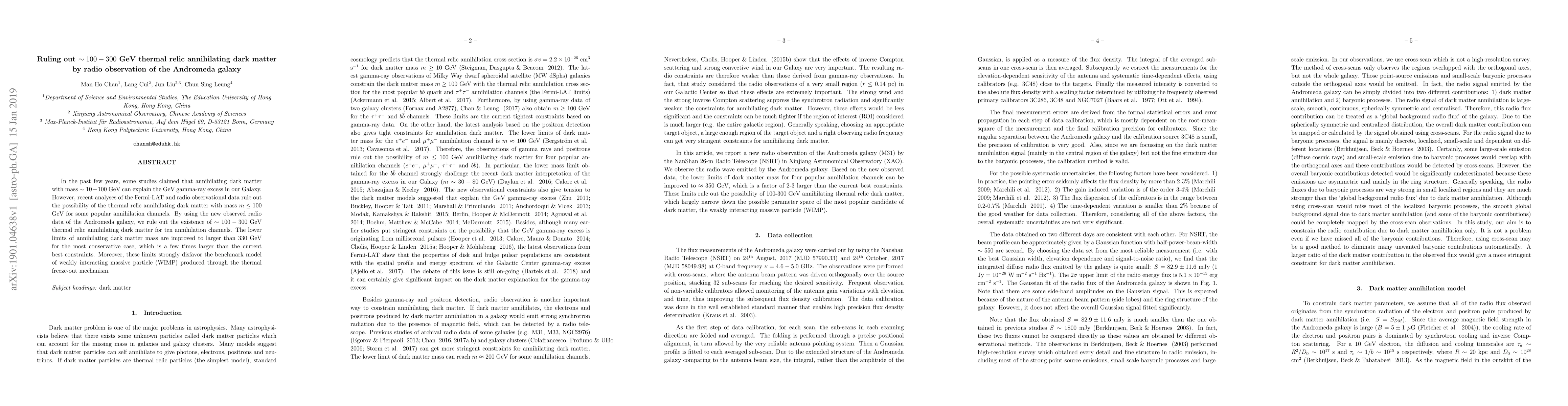 This paper uses radio observations of the Andromeda galaxy to rule out the existence of thermal relic dark matter with masses between 100-300 GeV for ten annihilation channels, significantly improving lower mass limits to over 330 GeV and challenging the weakly interacting massive particle (WIMP) benchmark model.