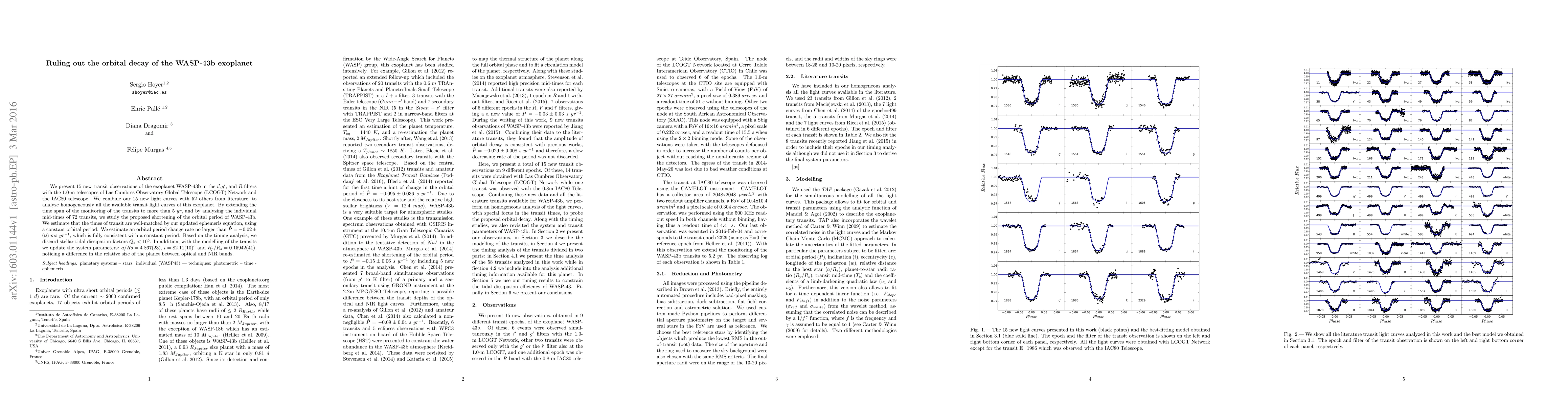 Researchers used 67 transit observations to test if the exoplanet WASP-43b's orbital period was shortening over time; they found no evidence of a change in the period, ruling out certain models of tidal dissipation.