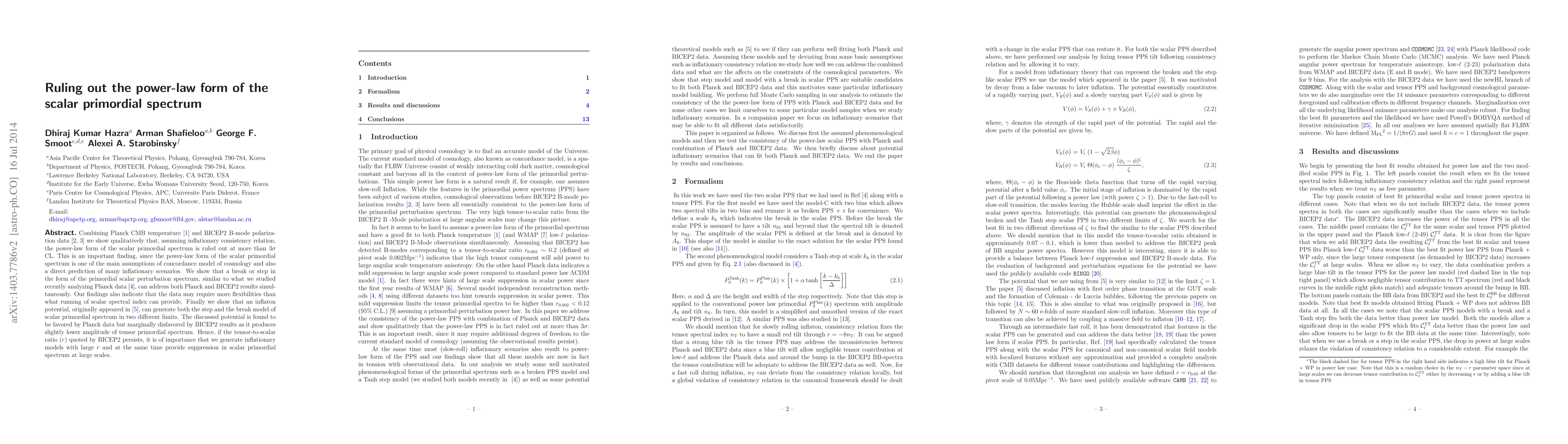 This paper combines Planck and BICEP2 data to rule out the power-law form of the scalar primordial spectrum at more than $3\sigma$ confidence, challenging the standard inflationary model. It suggests that a break or step in the spectrum can reconcile the data and proposes a specific inflaton potential that fits Planck but not BICEP2 results, highlighting the need for models with large tensor-to-scalar ratios.