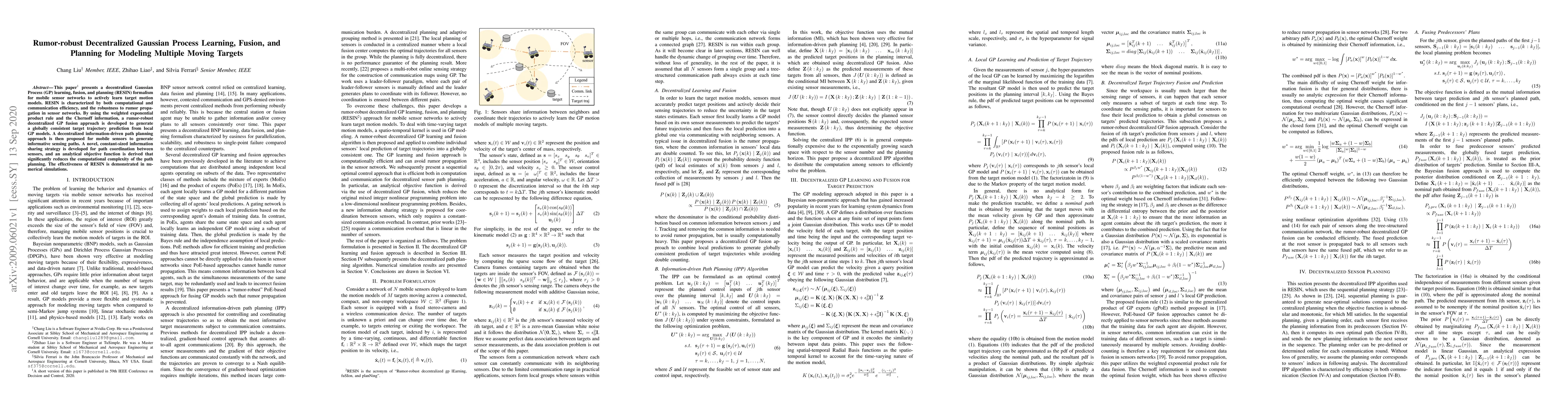 The paper presents a decentralized Gaussian Process (GP) learning, fusion, and planning (RESIN) formalism for mobile sensor networks, utilizing a weighted exponential product rule and Chernoff information to avoid rumor propagation in sensor networks.