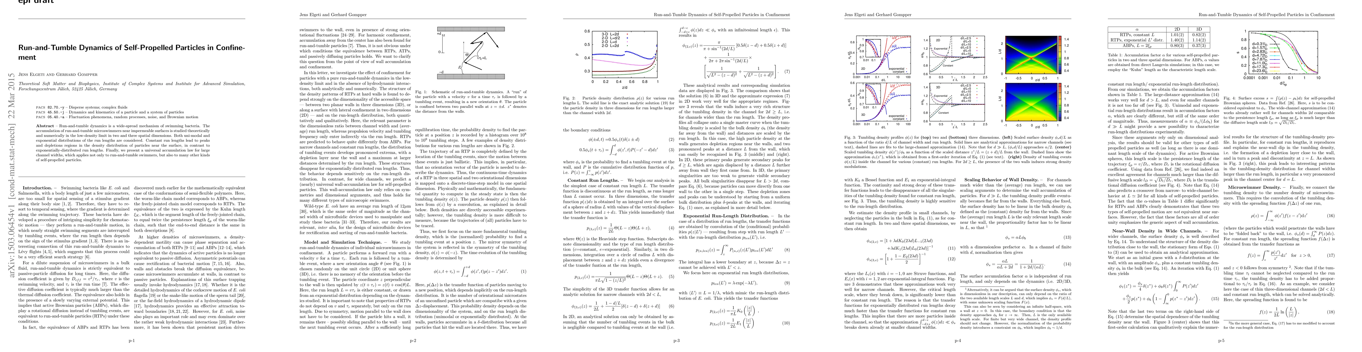 This paper investigates the run-and-tumble dynamics of self-propelled particles near impermeable surfaces, revealing distinct density distribution patterns based on run length distributions. A universal accumulation law is derived for large channel widths applicable to various self-propelled particles.