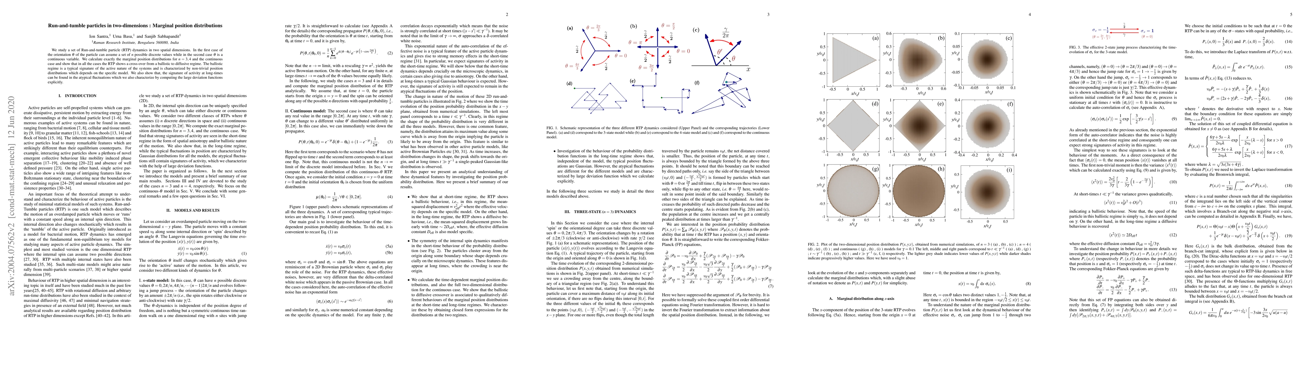 We study a set of Run-and-tumble particle (RTP) dynamics in two spatial dimensions. In the first case of the orientation {\theta} of the particle can assume a set of n possible discrete values while in the second case {\theta} is a continuous variable. We calculate exactly the marginal position distributions for n = 3,4 and the continuous case and show that in all the cases the RTP shows a cross-over from a ballistic to diffusive regime. The ballistic regime is a typical signature of the active nature of the systems and is characterized by non-trivial position distributions which depends on the specific model. We also show that, the signature of activity at long-times can be found in the atypical fluctuations which we also characterize by computing the large deviation functions explicitly.