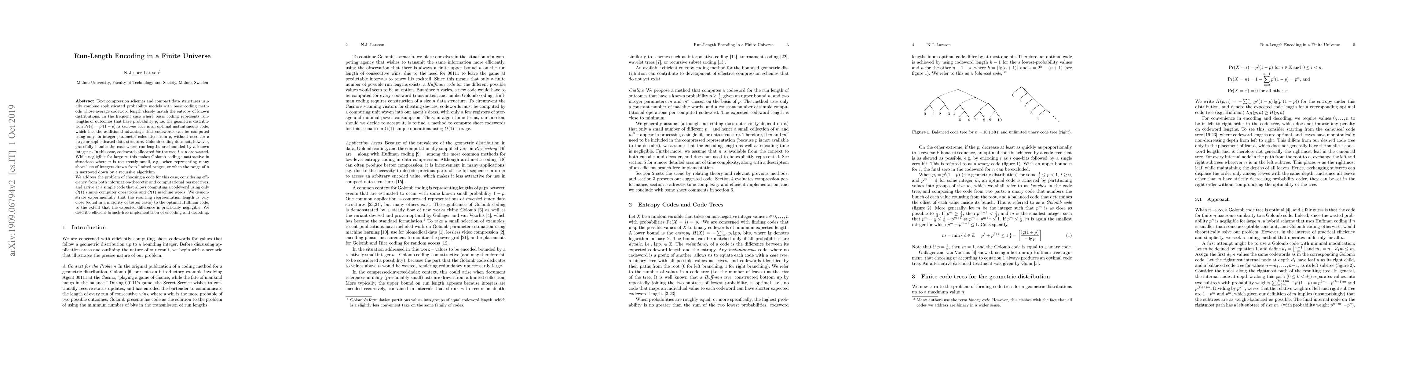This paper proposes a simple coding scheme to efficiently compress run-lengths of outcomes with bounded lengths, addressing the limitations of Golomb coding. The new code achieves near-optimal representation length with minimal computational overhead, demonstrating practical efficiency through experimental validation.