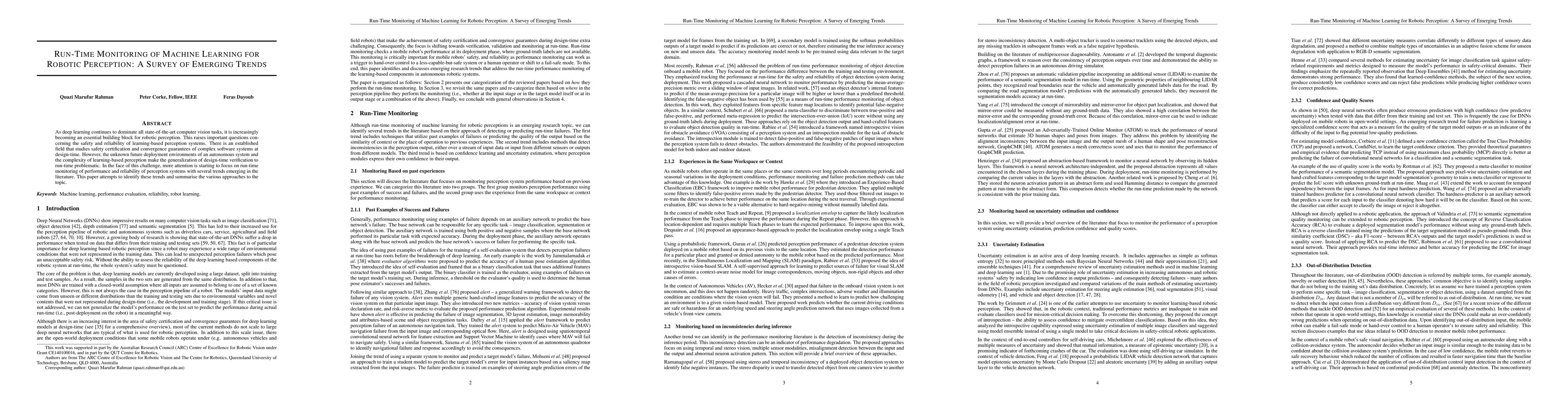 As deep learning continues to dominate all state-of-the-art computer vision tasks, it is increasingly becoming an essential building block for robotic perception. This raises important questions concerning the safety and reliability of learning-based perception systems. There is an established field that studies safety certification and convergence guarantees of complex software systems at design-time. However, the unknown future deployment environments of an autonomous system and the complexity of learning-based perception make the generalization of design-time verification to run-time problematic. In the face of this challenge, more attention is starting to focus on run-time monitoring of performance and reliability of perception systems with several trends emerging in the literature. This paper attempts to identify these trends and summarise the various approaches to the topic.