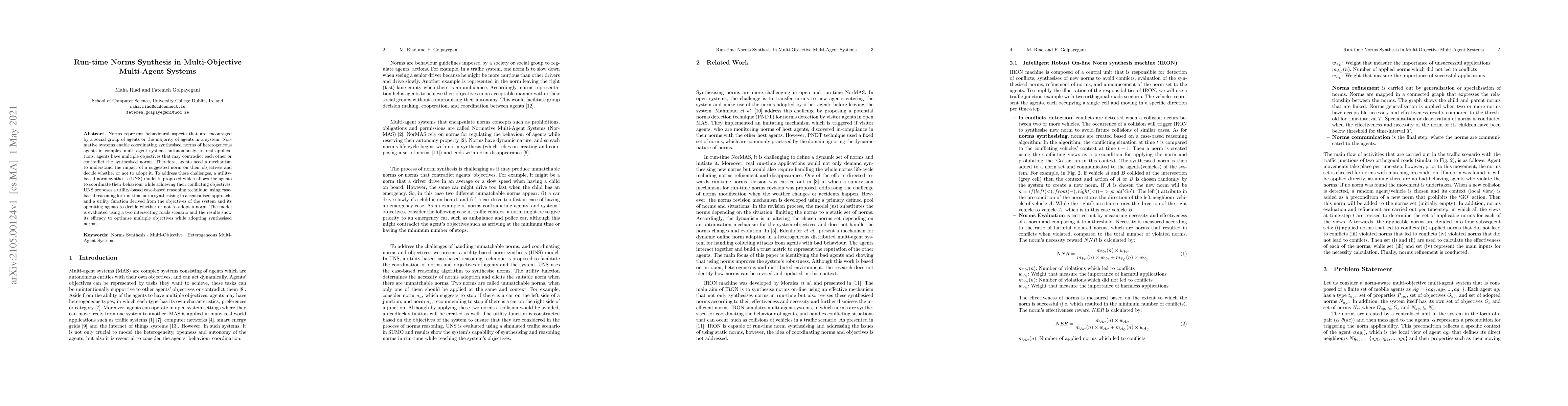 A new model proposes a utility-based approach to synthesizing norms in multi-agent systems with conflicting objectives, aiming to optimize multiple goals while adopting synthesized norms.