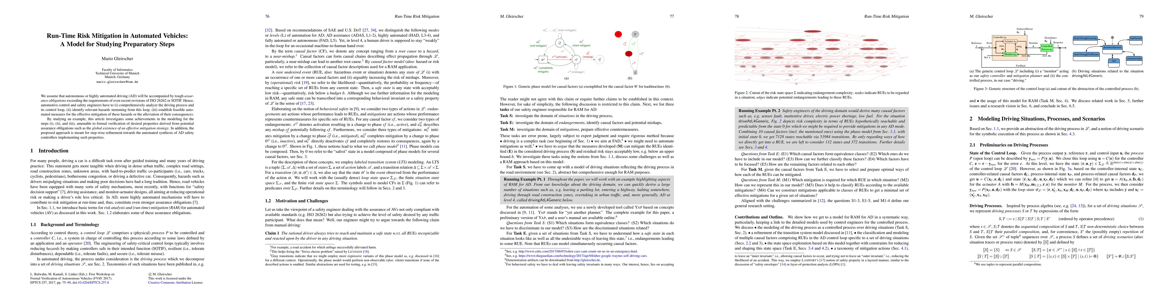 We assume that autonomous or highly automated driving (AD) will be accompanied by tough assurance obligations exceeding the requirements of even recent revisions of ISO 26262 or SOTIF. Hence, automotive control and safety engineers have to (i) comprehensively analyze the driving process and its control loop, (ii) identify relevant hazards stemming from this loop, (iii) establish feasible automated measures for the effective mitigation of these hazards or the alleviation of their consequences. By studying an example, this article investigates some achievements in the modeling for the steps (i), (ii), and (iii), amenable to formal verification of desired properties derived from potential assurance obligations such as the global existence of an effective mitigation strategy. In addition, the proposed approach is meant for step-wise refinement towards the automated synthesis of AD safety controllers implementing such properties.