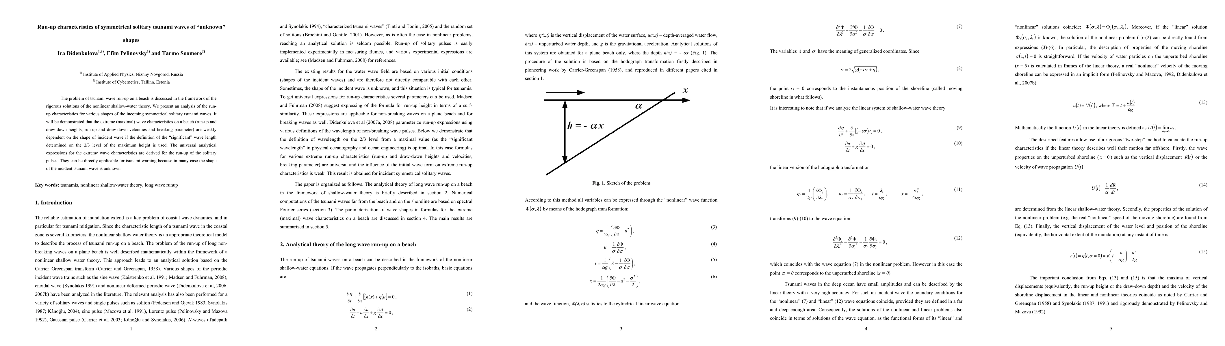 This paper analyzes the run-up characteristics of symmetrical solitary tsunami waves using nonlinear shallow-water theory, finding that extreme wave features on a beach are largely shape-independent if significant wave length is defined at the 2/3 level of maximum height. Universal analytical expressions for extreme wave characteristics are derived, useful for tsunami warnings where wave shape is often unknown.