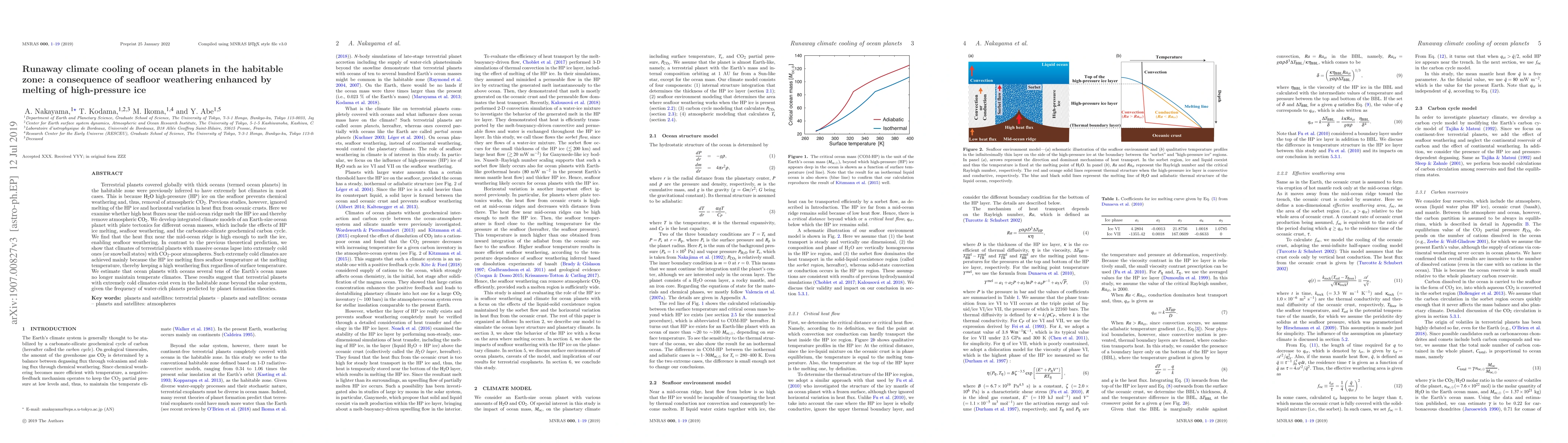 This research reveals that ocean planets in the habitable zone can experience runaway climate cooling due to melting of high-pressure ice on the seafloor, which enhances chemical weathering and removes atmospheric CO$_2$, leading to extremely cold climates. Contrary to previous assumptions, high heat fluxes near mid-ocean ridges can melt this ice, preventing the maintenance of temperate climates.
