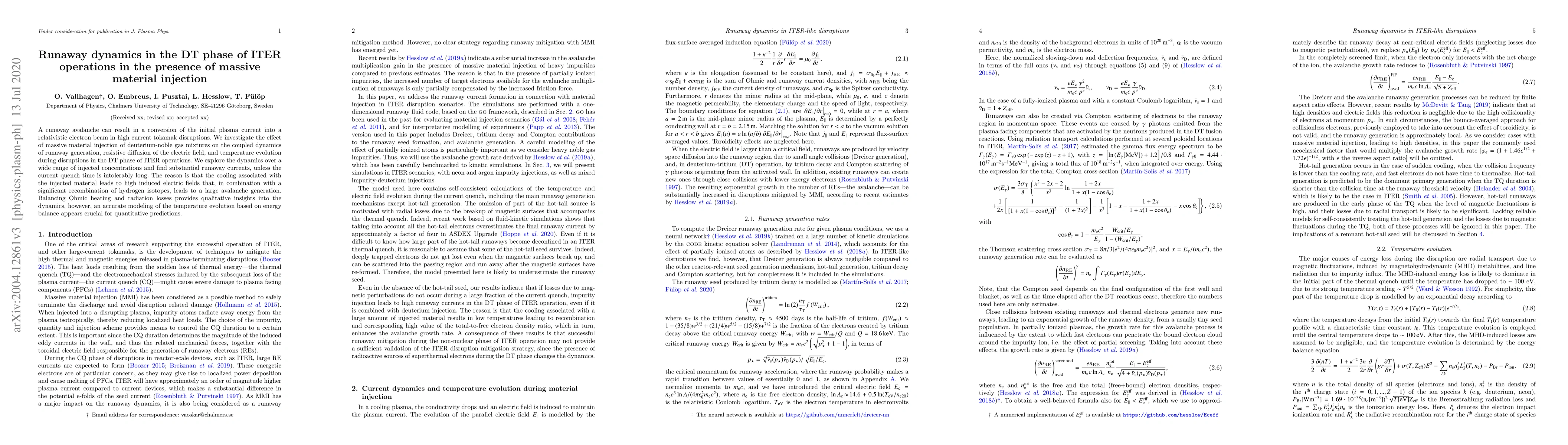 A runaway avalanche can result in a conversion of the initial plasma current into a relativistic electron beam in high current tokamak disruptions. We investigate the effect of massive material injection of deuterium-noble gas mixtures on the coupled dynamics of runaway generation, resistive diffusion of the electric field, and temperature evolution during disruptions in the DT phase of ITER operations. We explore the dynamics over a wide range of injected concentrations and find substantial runaway currents, unless the current quench time is intolerably long. The reason is that the cooling associated with the injected material leads to high induced electric fields that, in combination with a significant recombination of hydrogen isotopes, leads to a large avalanche generation. Balancing Ohmic heating and radiation losses provides qualitative insights into the dynamics, however, an accurate modeling of the temperature evolution based on energy balance appears crucial for quantitative predictions.
