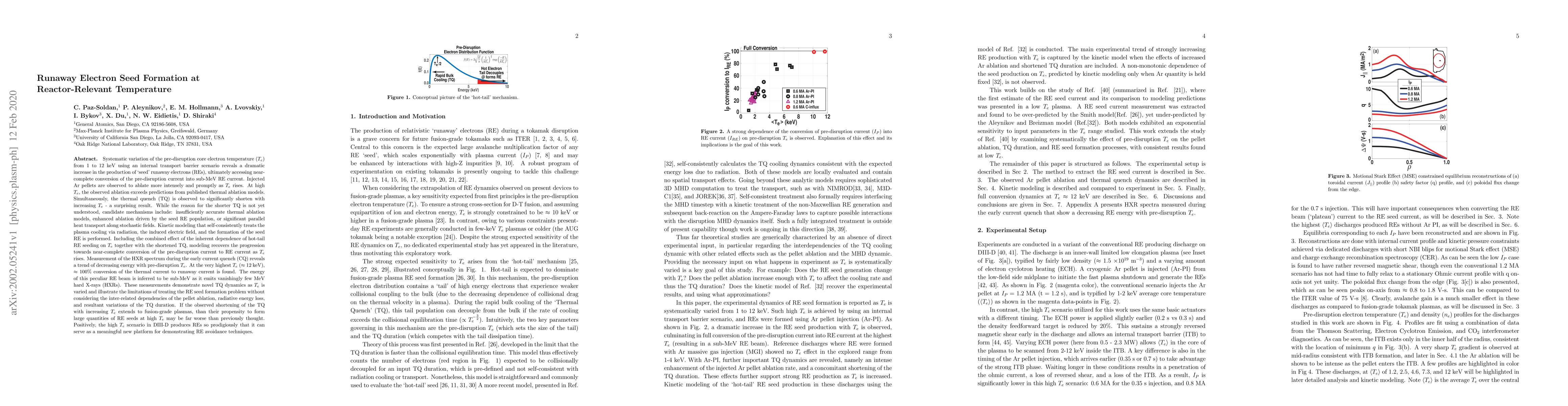 The research presents a kinetic model that self-consistently treats plasma cooling via radiation, induced electric field, and seed RE formation, successfully reproducing strong seed RE production at the highest Te.