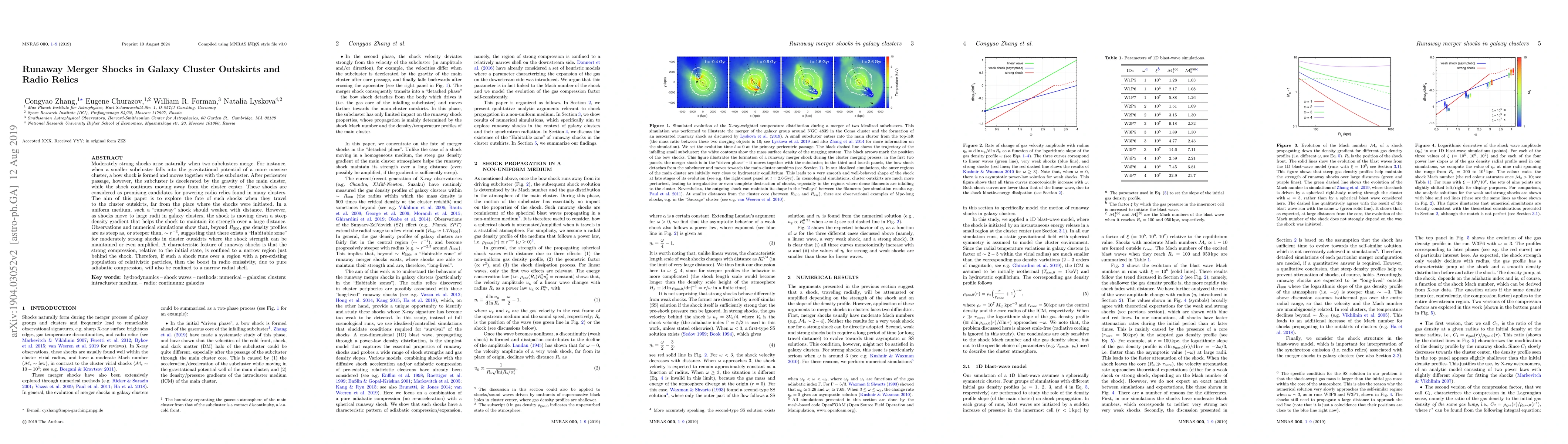 This paper investigates how runaway merger shocks in galaxy clusters maintain their strength and potentially power radio relics in cluster outskirts. It finds that shocks moving through steep density gradients can sustain their intensity over large distances, creating a "Habitable zone" for these shocks and potentially amplifying their radio emissivity in regions with pre-existing relativistic particles.