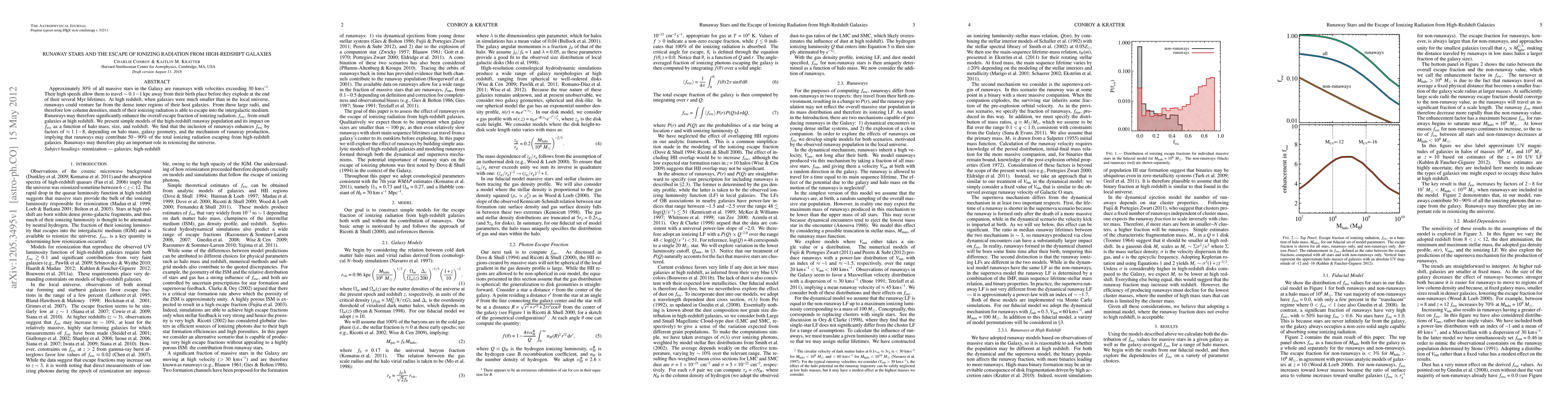 This paper investigates how runaway stars, which escape their birth galaxies at high speeds, enhance the escape of ionizing radiation from high-redshift galaxies. Models show that runaways can significantly boost the escape fraction of ionizing radiation, potentially contributing 50-90% to the total, thus playing a crucial role in the universe's reionization.