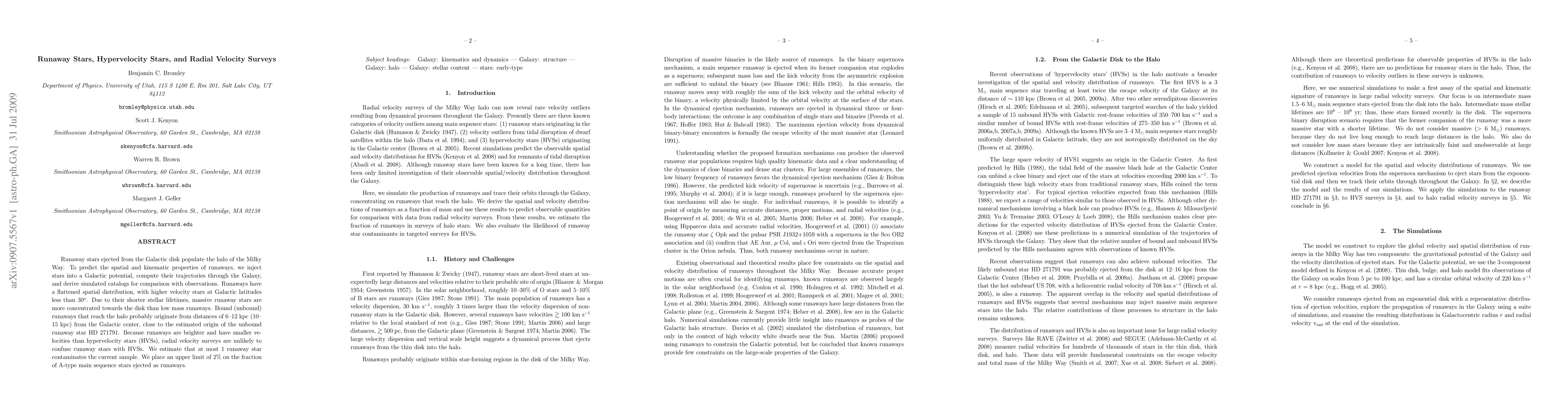 Runaway stars ejected from the Galactic disk populate the halo of the Milky Way. To predict the spatial and kinematic properties of runaways, we inject stars into a Galactic potential, compute their trajectories through the Galaxy, and derive simulated catalogs for comparison with observations. Runaways have a flattened spatial distribution, with higher velocity stars at Galactic latitudes less than 30 degrees. Due to their shorter stellar lifetimes, massive runaway stars are more concentrated towards the disk than low mass runaways. Bound (unbound) runaways that reach the halo probably originate from distances of 6--12 kpc (10--15 kpc) from the Galactic center, close to the estimated origin of the unbound runaway star HD 271791. Because runaways are brighter and have smaller velocities than hypervelocity stars (HVSs), radial velocity surveys are unlikely to confuse runaway stars with HVSs. We estimate that at most 1 runaway star contaminates the current sample. We place an upper limit of 2% on the fraction of A-type main sequence stars ejected as runaways.