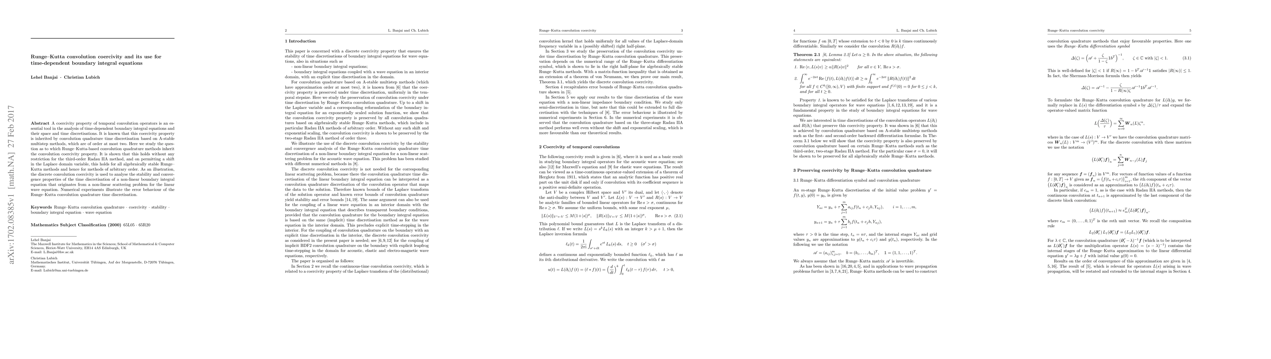 This paper investigates the coercivity property of Runge-Kutta convolution quadrature methods for time-dependent boundary integral equations. It demonstrates that the third-order Radau IIA method and all algebraically stable Runge-Kutta methods inherit this property, facilitating stability and convergence analysis for discretised non-linear boundary integral equations.