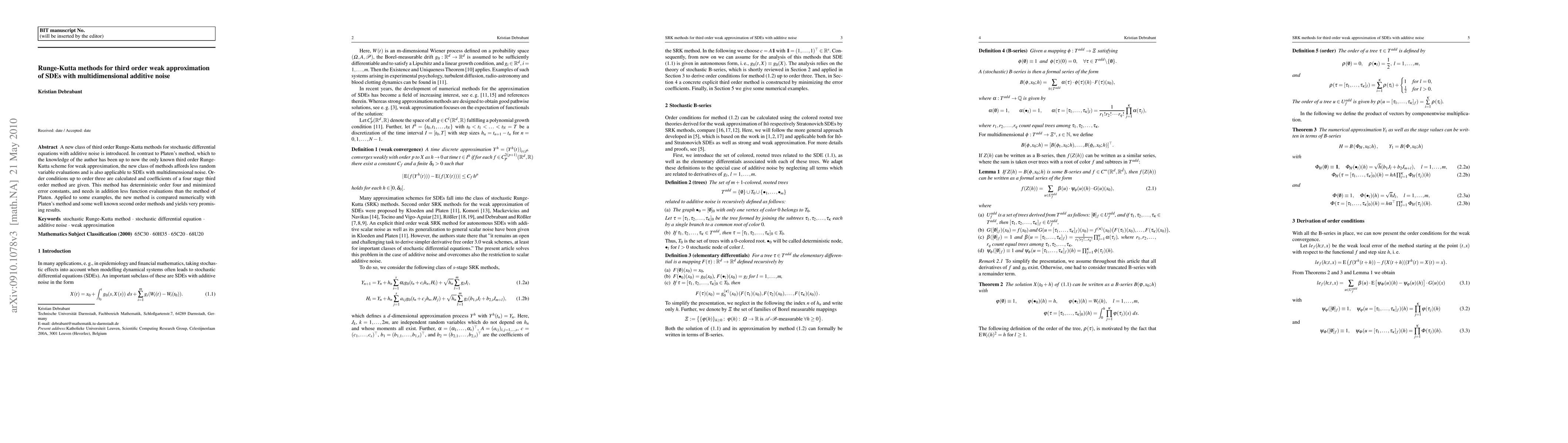 This paper introduces a new third-order Runge-Kutta method for approximating stochastic differential equations (SDEs) with multidimensional additive noise, offering fewer random variable evaluations and broader applicability compared to existing methods like Platen's. The new method demonstrates promising numerical results in comparison to both second and third-order methods.