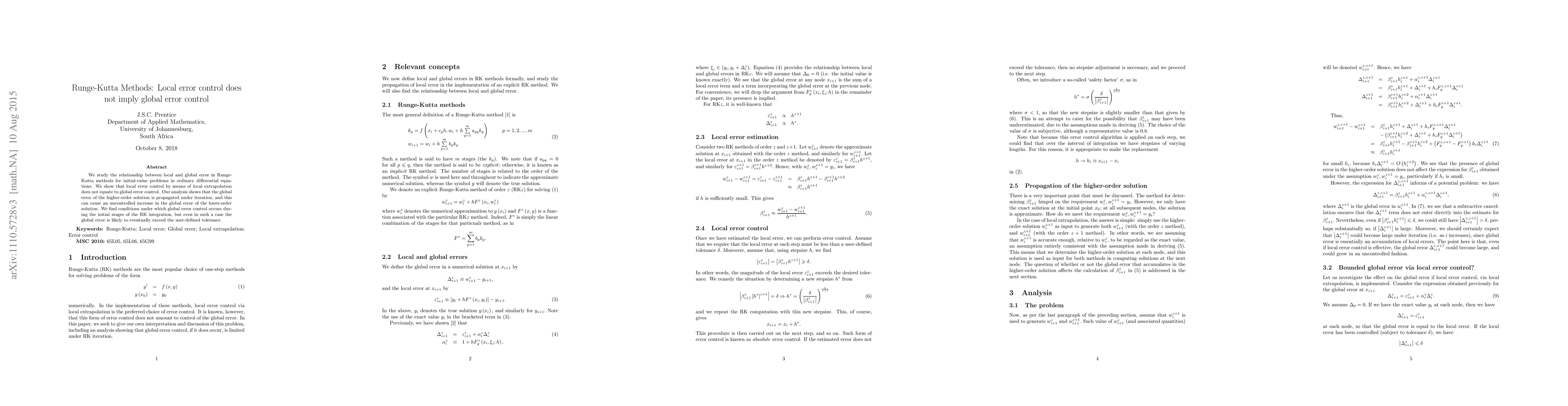 This paper investigates the discrepancy between local and global error in Runge-Kutta methods for solving ordinary differential equations. It demonstrates that local error control via local extrapolation does not guarantee global error control, as higher-order global errors propagate and can escalate, often exceeding user-defined tolerances despite initial global error control.