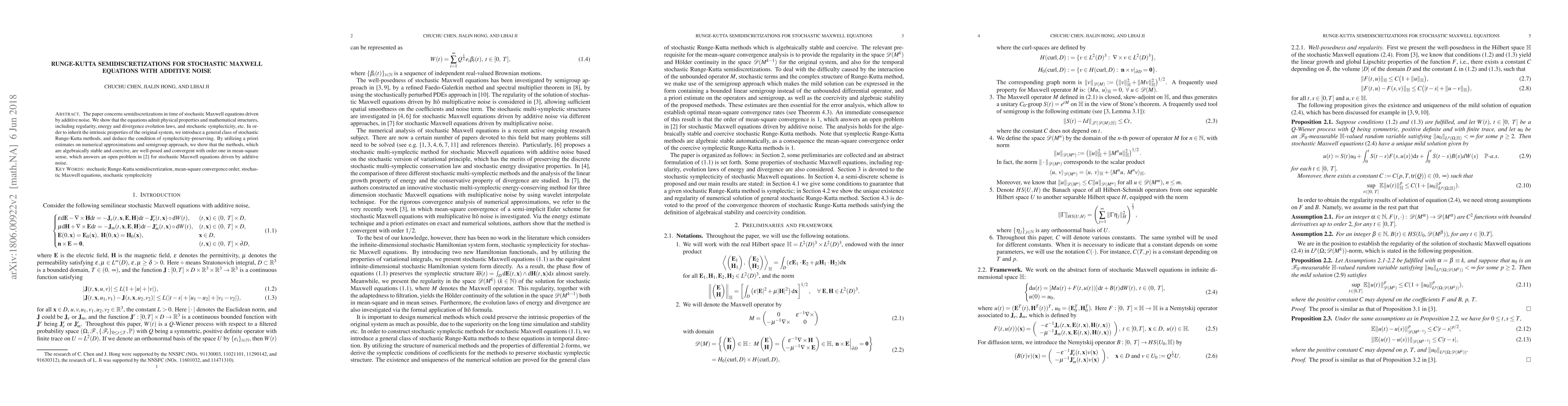 The paper concerns semidiscretizations in time of stochastic Maxwell equations driven by additive noise. We show that the equations admit physical properties and mathematical structures, including regularity, energy and divergence evolution laws, and stochastic symplecticity, etc. In order to inherit the intrinsic properties of the original system, we introduce a general class of stochastic Runge-Kutta methods, and deduce the condition of symplecticity-preserving. By utilizing a priori estimates on numerical approximations and semigroup approach, we show that the methods, which are algebraically stable and coercive, are well-posed and convergent with order one in mean-square sense, which answers an open problem in [Chen and Hong, SIAM J. Numer. Anal., 2016] for stochastic Maxwell equations driven by additive noise.