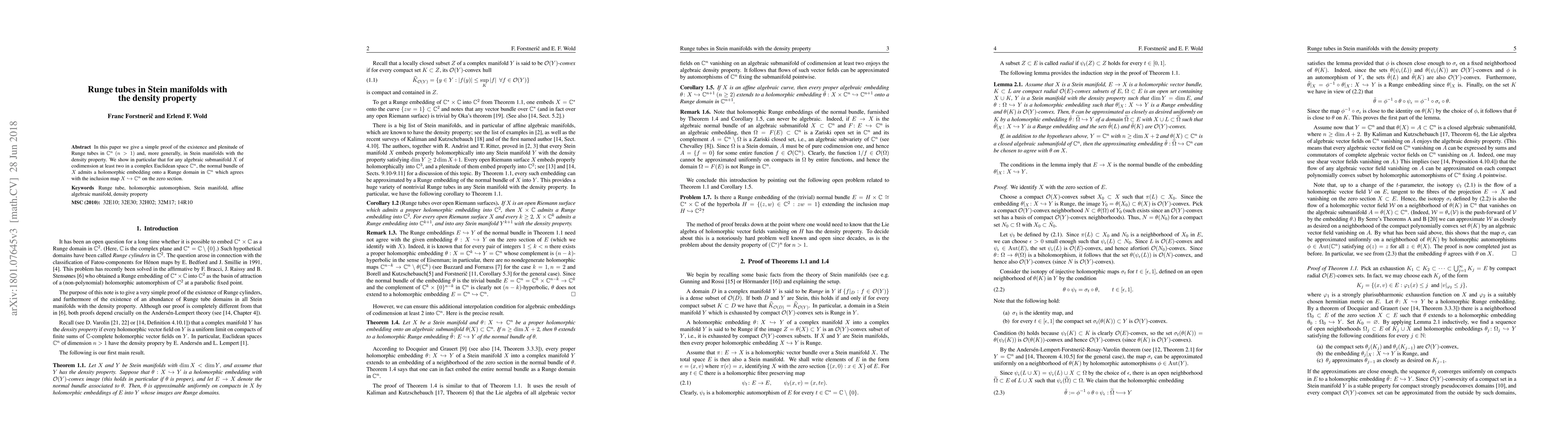 This paper provides a straightforward proof for the existence and abundance of Runge tubes in Stein manifolds with the density property, specifically demonstrating that algebraic submanifolds of codimension at least two in $\mathbb C^n$ can be holomorphically embedded into Runge domains in $\mathbb C^n$.