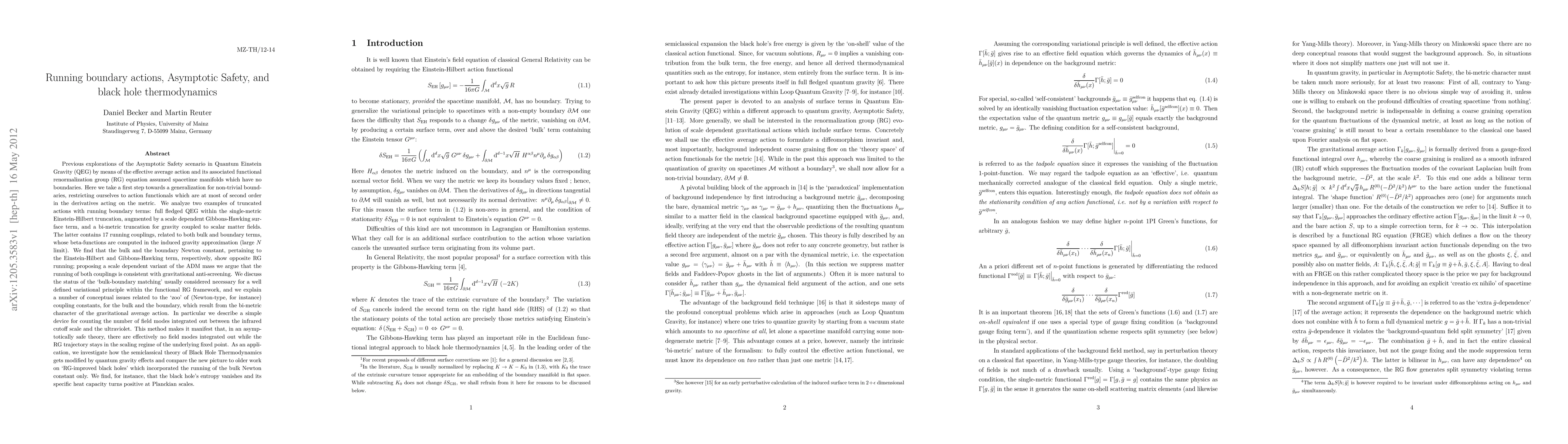 Previous explorations of the Asymptotic Safety scenario in Quantum Einstein Gravity (QEG) by means of the effective average action and its associated functional renormalization group (RG) equation assumed spacetime manifolds which have no boundaries. Here we take a first step towards a generalization for non-trivial boundaries, restricting ourselves to action functionals which are at most of second order in the derivatives acting on the metric. We analyze two examples of truncated actions with running boundary terms: full fledged QEG within the single-metric Einstein-Hilbert (EH) truncation, augmented by a scale dependent Gibbons-Hawking (GH) surface term, and a bi-metric truncation for gravity coupled to scalar matter fields. The latter contains 17 running couplings, related to both bulk and boundary terms, whose beta-functions are computed in the induced gravity approximation. We find that the bulk and the boundary Newton constant, pertaining to the EH and GH term, respectively, show opposite RG running; proposing a scale dependent variant of the ADM mass we argue that the running of both couplings is consistent with gravitational anti-screening. We describe a simple device for counting the number of field modes integrated out between the infrared cutoff scale and the ultraviolet. This method makes it manifest that, in an asymptotically safe theory, there are effectively no field modes integrated out while the RG trajectory stays in the scaling regime of the underlying fixed point. As an application, we investigate how the semiclassical theory of Black Hole Thermodynamics gets modified by quantum gravity effects and compare the new picture to older work on `RG-improved black holes' which incorporated the running of the bulk Newton constant only. We find, for instance, that the black hole's entropy vanishes and its specific heat capacity turns positive at Planckian scales.