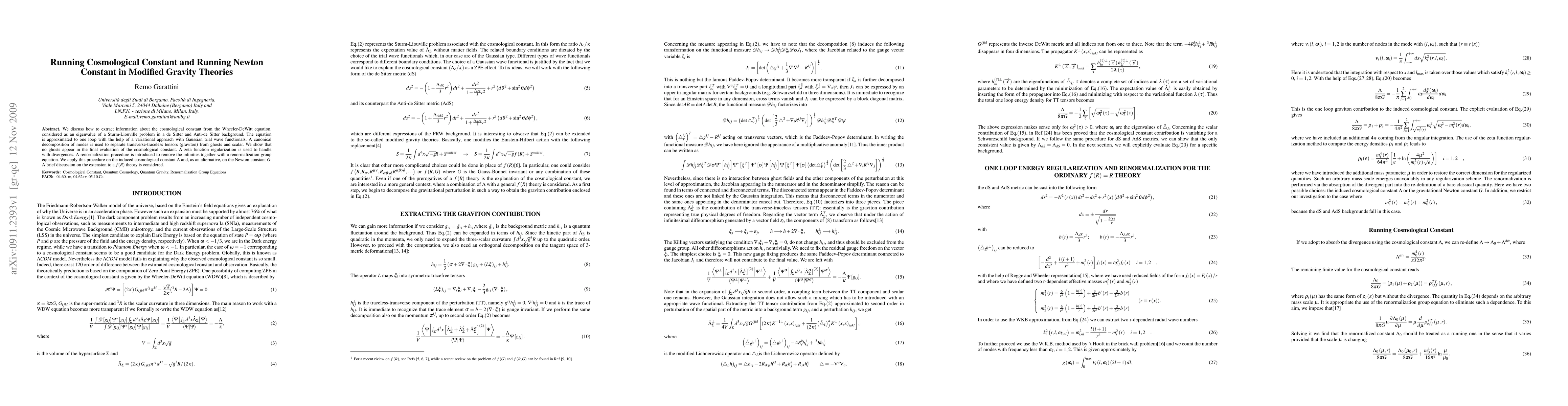 This paper explores the extraction of the cosmological constant from the Wheeler-DeWitt equation in modified gravity theories, employing a variational approach and zeta function regularization to handle divergences. It also examines the renormalization of the Newton constant $G$ alongside the cosmological constant $\Lambda$ in a de Sitter and Anti-de Sitter background.