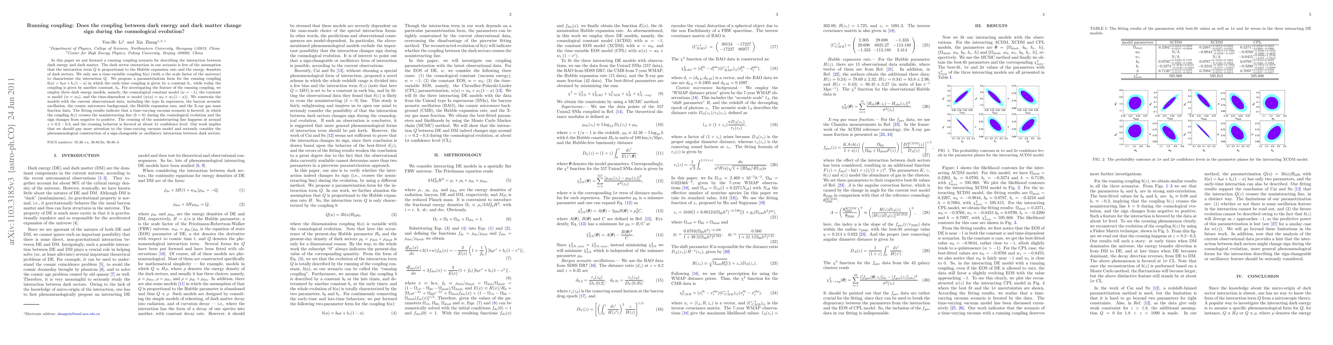 In this paper we put forward a running coupling scenario for describing the interaction between dark energy and dark matter. The dark sector interaction in our scenario is free of the assumption that the interaction term $Q$ is proportional to the Hubble expansion rate and the energy densities of dark sectors. We only use a time-variable coupling $b(a)$ (with $a$ the scale factor of the universe) to characterize the interaction $Q$. We propose a parametrization form for the running coupling $b(a)=b_0a+b_e(1-a)$ in which the early-time coupling is given by a constant $b_e$, while today the coupling is given by another constant, $b_0$. For investigating the feature of the running coupling, we employ three dark energy models, namely, the cosmological constant model ($w=-1$), the constant $w$ model ($w=w_0$), and the time-dependent $w$ model ($w(a)=w_0+w_1(1-a)$). We constrain the models with the current observational data, including the type Ia supernova, the baryon acoustic oscillation, the cosmic microwave background, the Hubble expansion rate, and the X-ray gas mass fraction data. The fitting results indicate that a time-varying vacuum scenario is favored, in which the coupling $b(z)$ crosses the noninteracting line ($b=0$) during the cosmological evolution and the sign changes from negative to positive. The crossing of the noninteracting line happens at around $z=0.2-0.3$, and the crossing behavior is favored at about 1$\sigma$ confidence level. Our work implies that we should pay more attention to the time-varying vacuum model and seriously consider the phenomenological construction of a sign-changeable or oscillatory interaction between dark sectors.