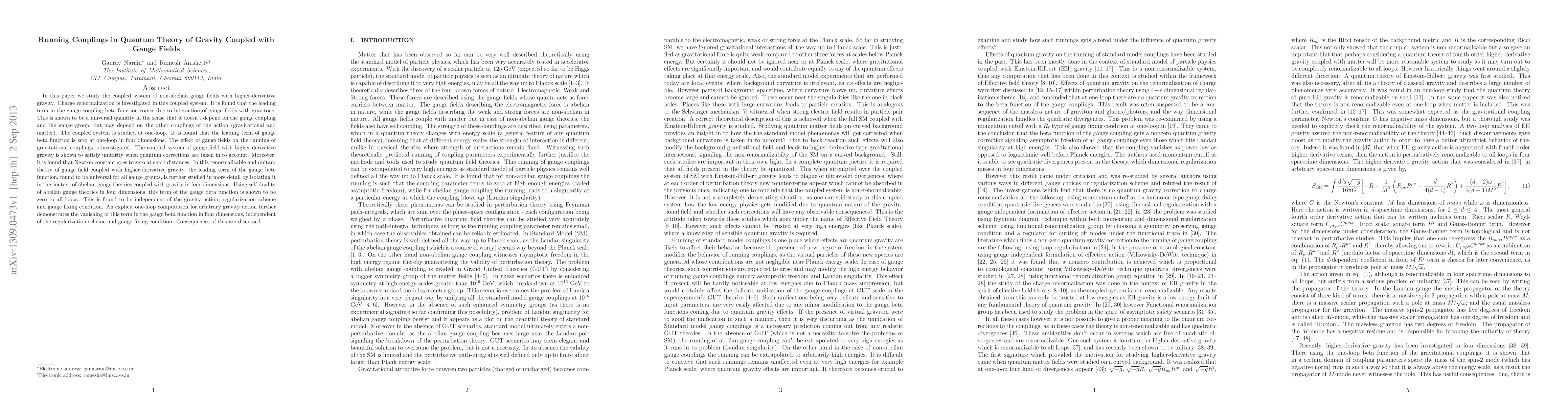 This paper investigates the renormalization and unitarity of a coupled quantum theory of gravity with non-abelian gauge fields, finding that the leading term in the gauge coupling beta function originates from gauge-graviton interactions. It concludes that this term is universal and vanishes at one-loop in four dimensions, preserving unitarity and indicating a zero Newton constant at short distances.