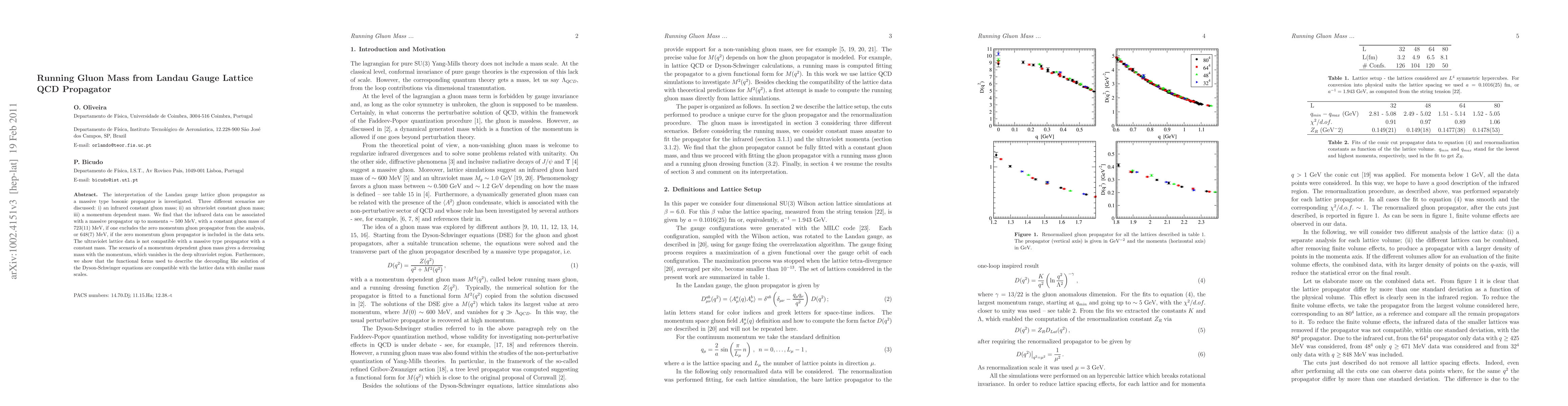 The interpretation of the Landau gauge lattice gluon propagator as a massive type bosonic propagator is investigated. Three different scenarios are discussed: i) an infrared constant gluon mass; ii) an ultraviolet constant gluon mass; iii) a momentum dependent mass. We find that the infrared data can be associated with a massive propagator up to momenta $\sim 500$ MeV, with a constant gluon mass of 723(11) MeV, if one excludes the zero momentum gluon propagator from the analysis, or 648(7) MeV, if the zero momentum gluon propagator is included in the data sets. The ultraviolet lattice data is not compatible with a massive type propagator with a constant mass. The scenario of a momentum dependent gluon mass gives a decreasing mass with the momentum, which vanishes in the deep ultraviolet region. Furthermore, we show that the functional forms used to describe the decoupling like solution of the Dyson-Schwinger equations are compatible with the lattice data with similar mass scales.