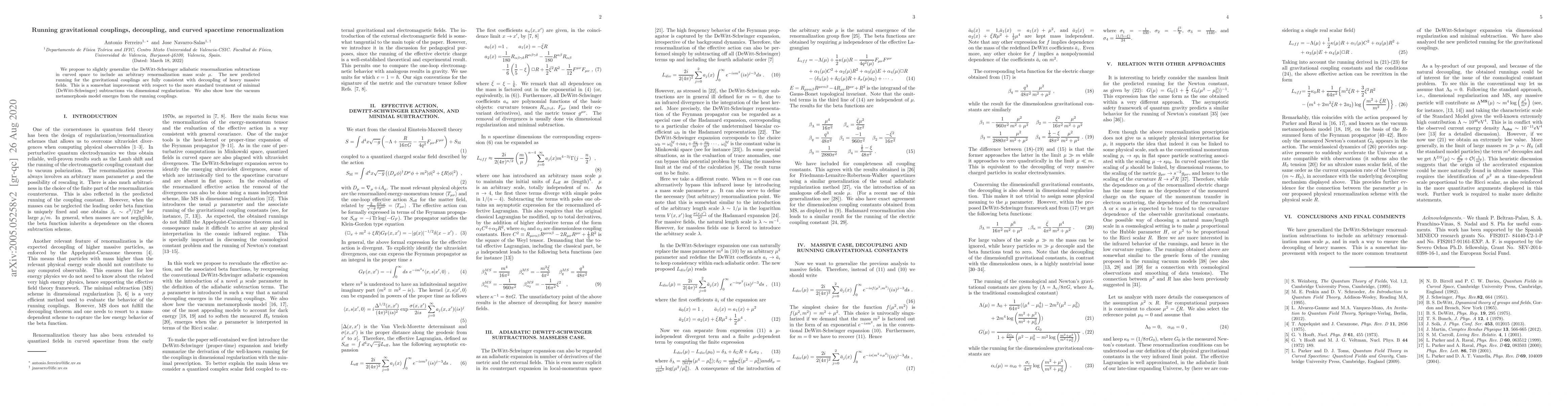 We propose to slightly generalize the DeWitt-Schwinger adiabatic renormalization subtractions in curved space to include an arbitrary renormalization mass scale $\mu$. The new predicted running for the gravitational couplings are fully consistent with decoupling of heavy massive fields. This is a somewhat improvement with respect to the more standard treatment of minimal (DeWitt-Schwinger) subtractions via dimensional regularization. We also show how the vacuum metamorphosis model emerges from the running couplings.