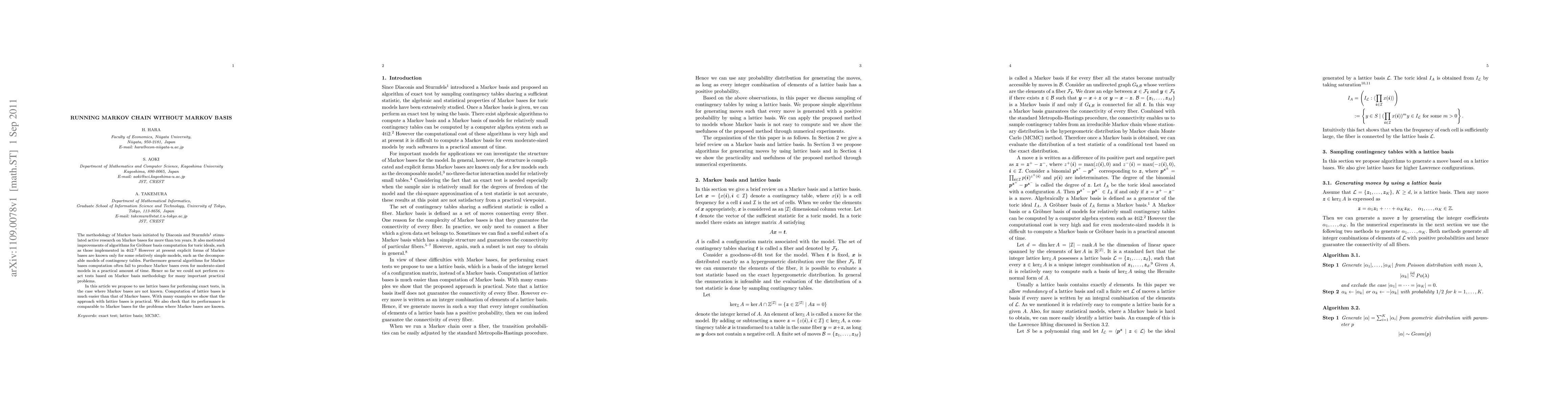 The methodology of Markov basis initiated by Diaconis and Sturmfels(1998) stimulated active research on Markov bases for more than ten years. It also motivated improvements of algorithms for Grobner basis computation for toric ideals, such as those implemented in 4ti2. However at present explicit forms of Markov bases are known only for some relatively simple models, such as the decomposable models of contingency tables. Furthermore general algorithms for Markov bases computation often fail to produce Markov bases even for moderate-sized models in a practical amount of time. Hence so far we could not perform exact tests based on Markov basis methodology for many important practical problems. In this article we propose to use lattice bases for performing exact tests, in the case where Markov bases are not known. Computation of lattice bases is much easier than that of Markov bases. With many examples we show that the approach with lattice bases is practical. We also check that its performance is comparable to Markov bases for the problems where Markov bases are known.