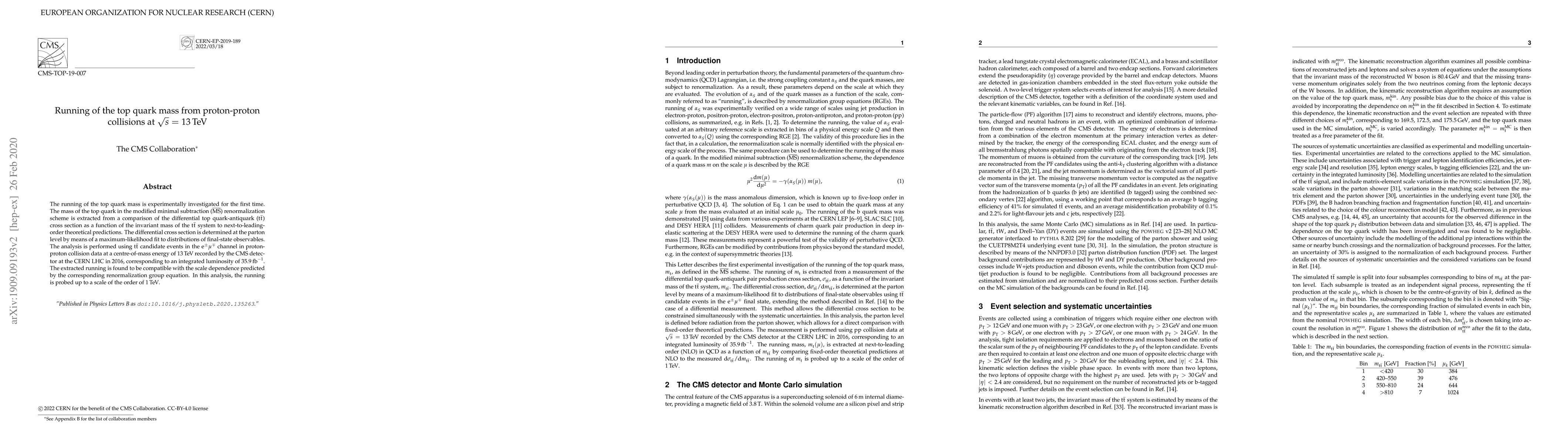 This study presents the first experimental investigation of the running of the top quark mass. Using data from 13 TeV proton-proton collisions at the CMS detector at CERN LHC, the mass is extracted from a comparison of the differential t-tbar cross section to theoretical predictions. The running is found compatible with predictions up to a scale of 1 TeV.