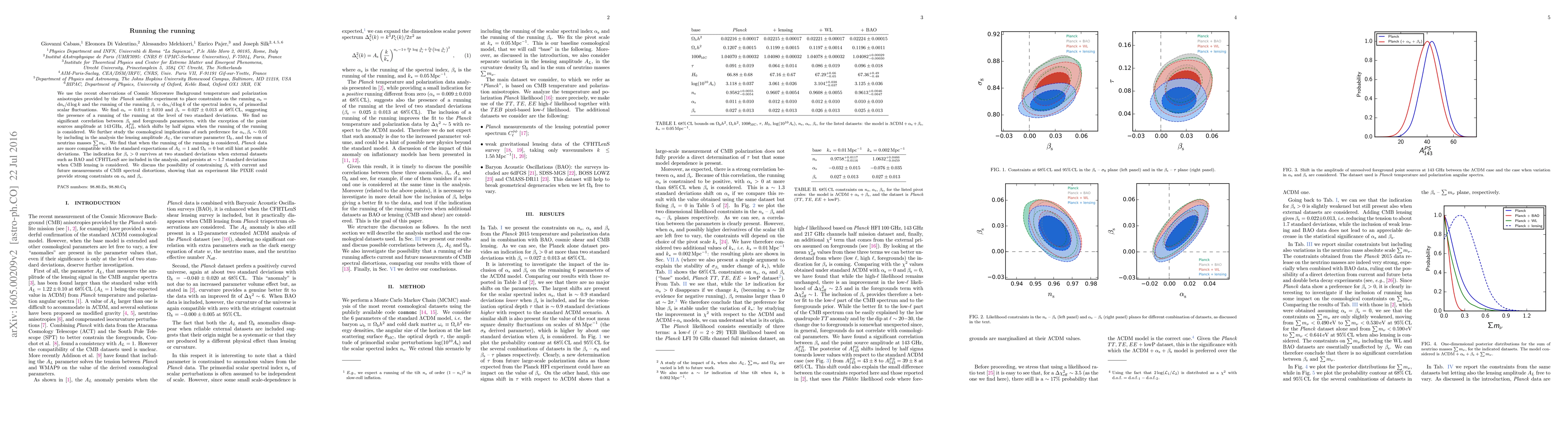 We use the recent observations of Cosmic Microwave Background temperature and polarization anisotropies provided by the Planck satellite experiment to place constraints on the running $\alpha_\mathrm{s} = \mathrm{d}n_{\mathrm{s}} / \mathrm{d}\log k$ and the running of the running $\beta_{\mathrm{s}} = \mathrm{d}\alpha_{\mathrm{s}} / \mathrm{d}\log k$ of the spectral index $n_{\mathrm{s}}$ of primordial scalar fluctuations. We find $\alpha_\mathrm{s}=0.011\pm0.010$ and $\beta_\mathrm{s}=0.027\pm0.013$ at $68\%\,\mathrm{CL}$, suggesting the presence of a running of the running at the level of two standard deviations. We find no significant correlation between $\beta_{\mathrm{s}}$ and foregrounds parameters, with the exception of the point sources amplitude at $143\,\mathrm{GHz}$, $A^{PS}_{143}$, which shifts by half sigma when the running of the running is considered. We further study the cosmological implications of such preference for $\alpha_\mathrm{s},\beta_\mathrm{s}\sim0.01$ by including in the analysis the lensing amplitude $A_L$, the curvature parameter $\Omega_k$, and the sum of neutrino masses $\sum m_{\nu}$. We find that when the running of the running is considered, Planck data are more compatible with the standard expectations of $A_L = 1$ and $\Omega_k = 0$ but still hint at possible deviations. The indication for $\beta_\mathrm{s} > 0$ survives at two standard deviations when external datasets such as BAO and CFHTLenS are included in the analysis, and persists at $\sim 1.7$ standard deviations when CMB lensing is considered. We discuss the possibility of constraining $\beta_\mathrm{s}$ with current and future measurements of CMB spectral distortions, showing that an experiment like PIXIE could provide strong constraints on $\alpha_\mathrm{s}$ and $\beta_\mathrm{s}$.