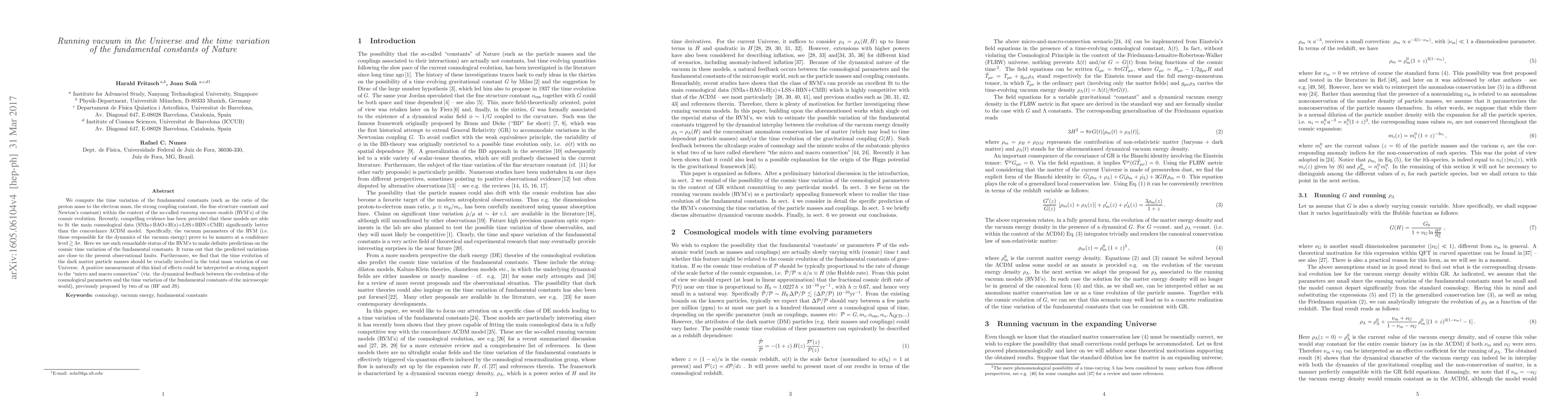 This paper investigates the time variation of fundamental constants within running vacuum models (RVMs) that outperform the standard ΛCDM model in fitting cosmological data. It predicts that these constants, including the proton-to-electron mass ratio, vary over cosmic time, with variations potentially detectable near current observational limits, thus supporting a "micro and macro connection" between cosmological and microscopic dynamics.