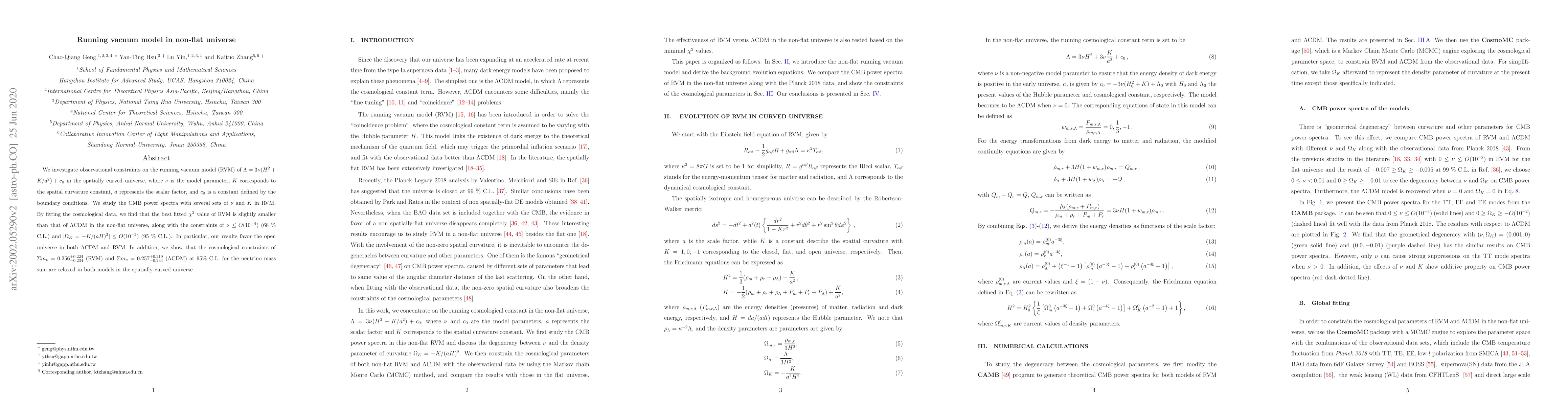 Researchers investigate the running vacuum model in a non-flat universe, finding similar constraints to the Lambda-CDM model on cosmological data, with constraints on the model parameter and dark energy density.