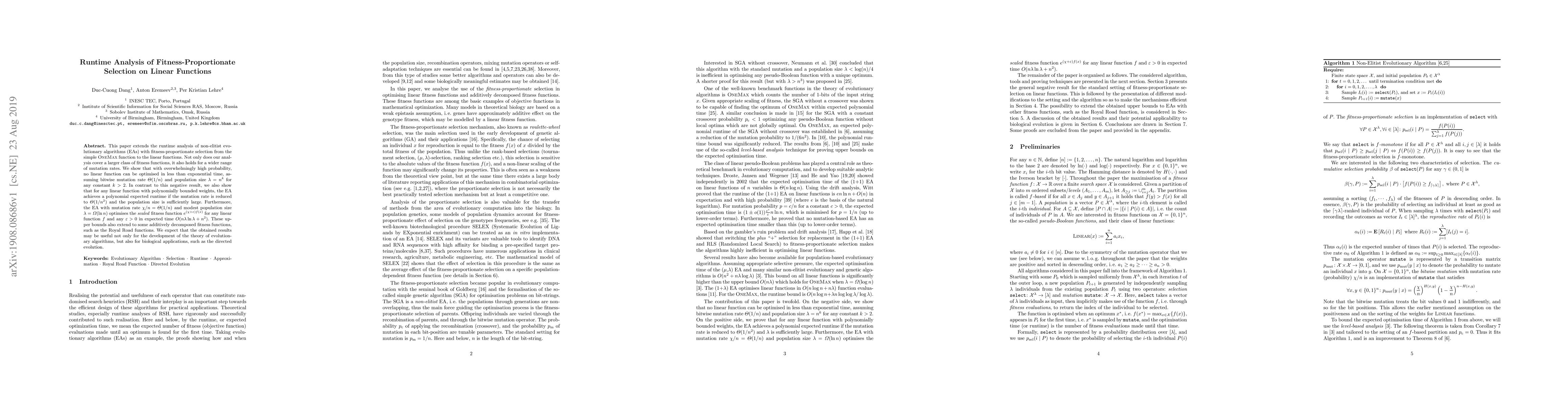 This paper analyzes the runtime of evolutionary algorithms with fitness-proportionate selection for linear functions, proving that optimization is exponentially hard under certain conditions but achievable polynomially with reduced mutation rates. The findings extend to additively decomposed fitness functions and have implications for both theoretical and biological applications.