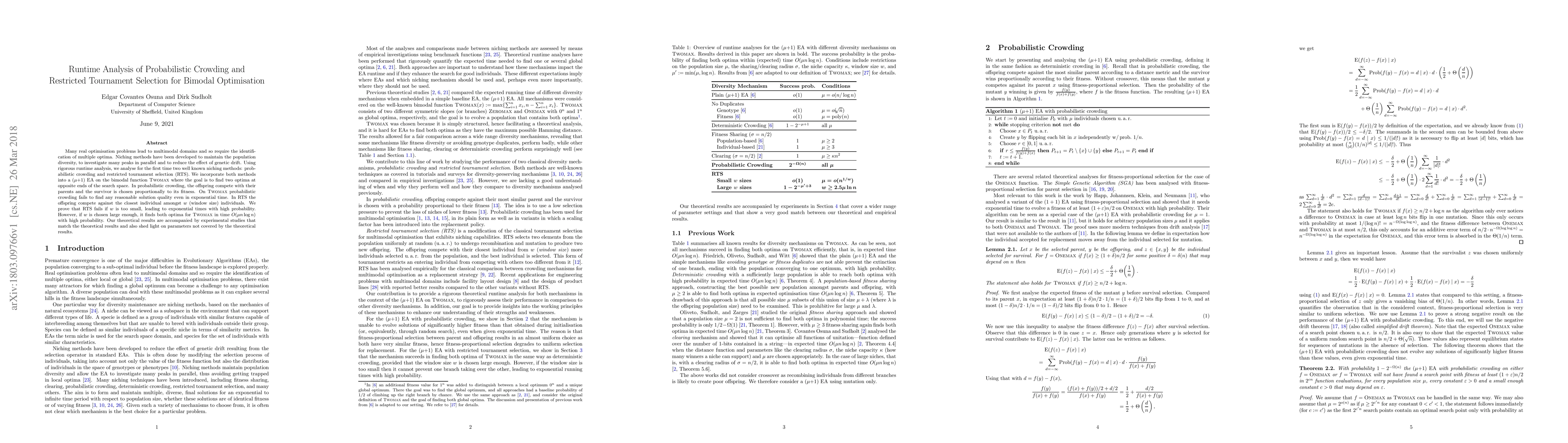 Many real optimisation problems lead to multimodal domains and so require the identification of multiple optima. Niching methods have been developed to maintain the population diversity, to investigate many peaks in parallel and to reduce the effect of genetic drift. Using rigorous runtime analysis, we analyse for the first time two well known niching methods: probabilistic crowding and restricted tournament selection (RTS). We incorporate both methods into a $(\mu+1)~EA$ on the bimodal function Twomax where the goal is to find two optima at opposite ends of the search space. In probabilistic crowding, the offspring compete with their parents and the survivor is chosen proportionally to its fitness. On Twomax probabilistic crowding fails to find any reasonable solution quality even in exponential time. In RTS the offspring compete against the closest individual amongst $w$ (window size) individuals. We prove that RTS fails if $w$ is too small, leading to exponential times with high probability. However, if w is chosen large enough, it finds both optima for Twomax in time $O(\mu n \log{n})$ with high probability. Our theoretical results are accompanied by experimental studies that match the theoretical results and also shed light on parameters not covered by the theoretical results.