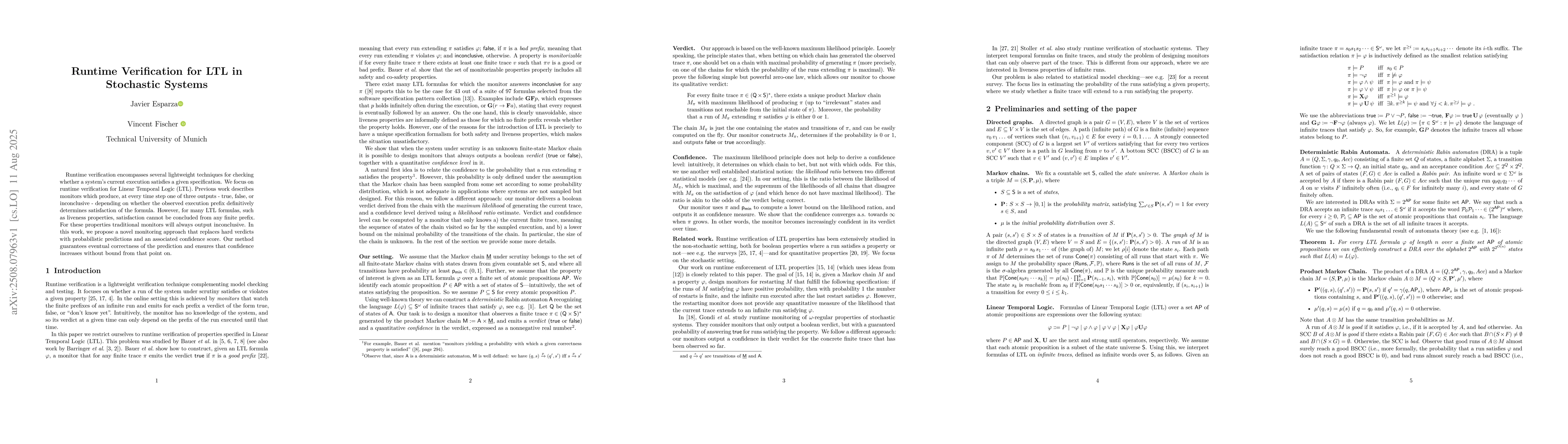 The paper presents a refined monitor for LTL properties of systems modeled as Markov chains, providing both qualitative verdicts and quantitative confidence levels derived from maximum likelihood and likelihood ratio principles.