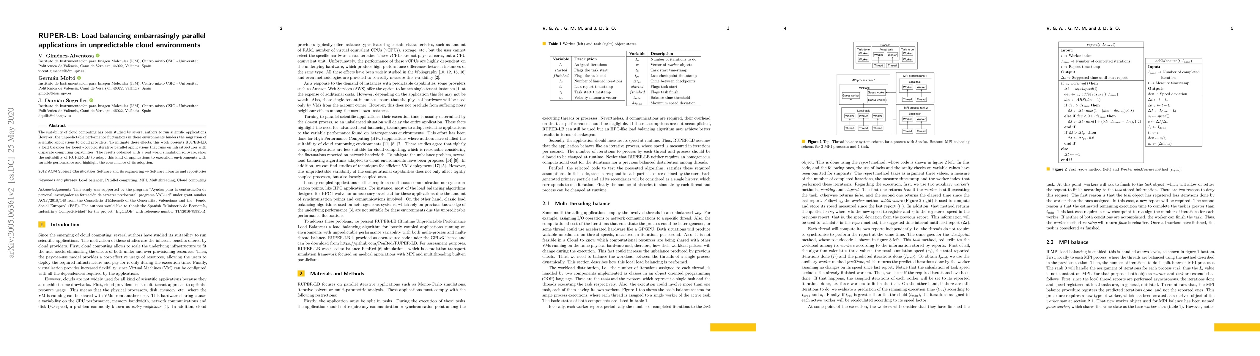 RUPER-LB is a load balancer designed to optimize the execution of loosely-coupled iterative parallel applications in unpredictable cloud environments. It effectively adapts these applications to variable performance conditions, as demonstrated through successful real-world simulations.