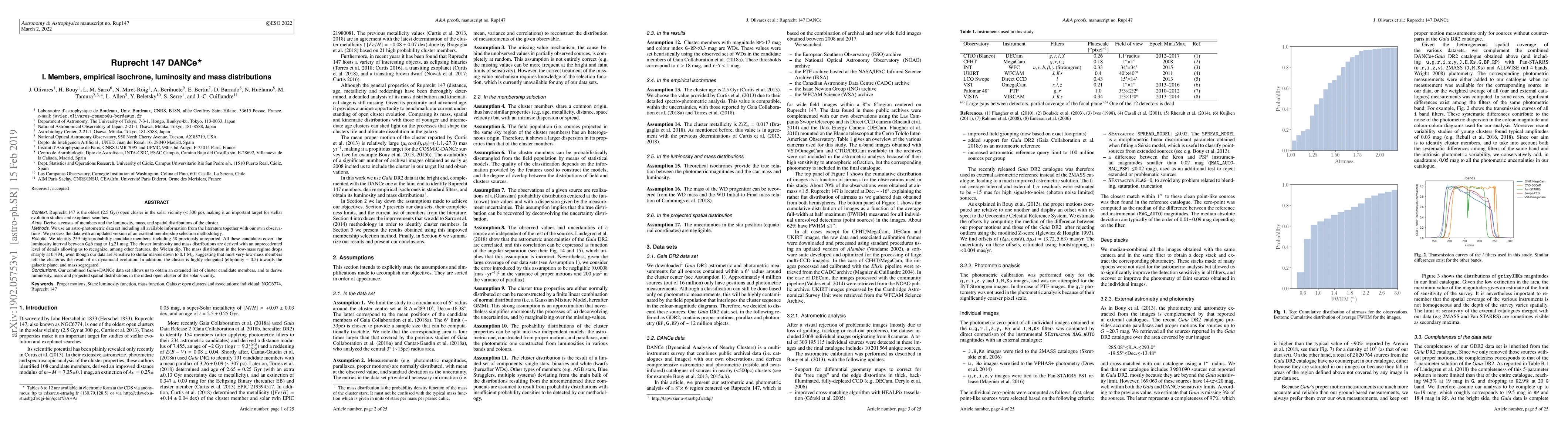 Context. Ruprecht 147 is the oldest (2.5 Gyr) open cluster in the solar vicinity (< 300 pc), making it an important target for stellar evolution studies and exoplanet searches. Aims. Derive a census of members and the luminosity, mass, and spatial distributions of the cluster. Methods. We use an astro-photometric data set including all available information from the literature together with our own observations. We process the data with an updated version of an existent membership selection methodology. Results. We identify 259 high-probability candidate members, including 58 previously unreported. All these candidates cover the luminosity interval between G > 6 mag to i< 21 mag. The cluster luminosity and mass distributions are derived with an unprecedented level of details allowing us to recognize, among other features, the Wielen dip. The mass distribution in the low-mass regime drops sharply at 0.4 $M_{\odot}$ even though our data are sensitive to stellar masses down to 0.1 $M_{\odot}$, suggesting that most very-low-mass members left the cluster as the result of its dynamical evolution. In addition, the cluster is highly elongated (ellipticity $\sim$ 0.5) towards the galactic plane, and mass segregated. Conclusions. Our combined Gaia+DANCe data set allows us to obtain an extended list of cluster candidate members, and to derive luminosity, mass and projected spatial distributions in the oldest open cluster of the solar vicinity.