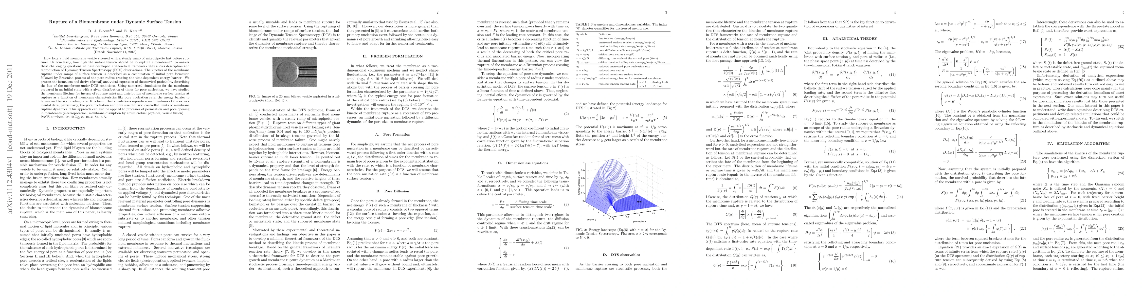 This paper develops a theoretical framework to describe the dynamics of biomembrane rupture under increasing surface tension, using Dynamic Tension Spectroscopy (DTS). The study combines initial pore formation with a Brownian process and provides analytical expressions for the survival probability of the membrane, validated through numerical simulations that match experimental observations.