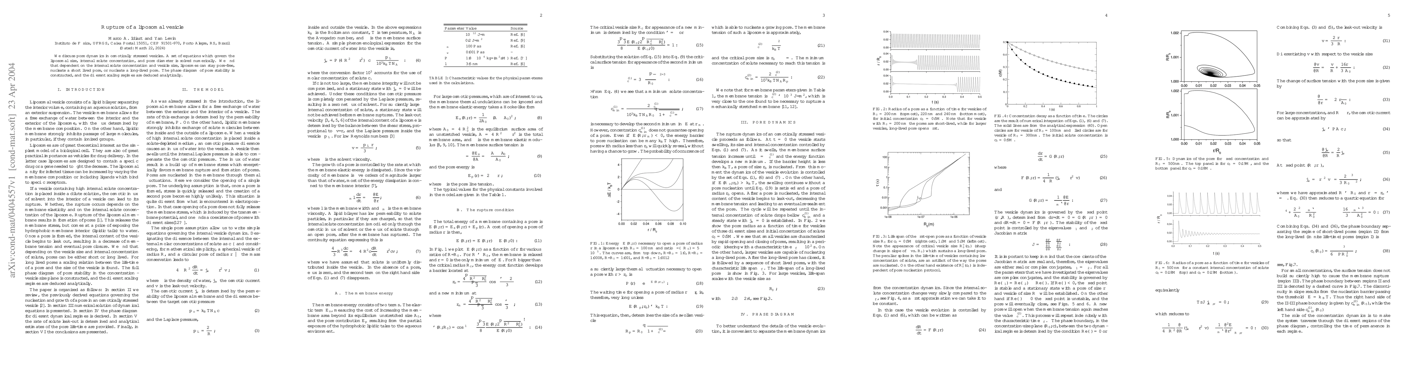 Researchers studied how liposomes (tiny vesicles) respond to stress caused by high salt concentrations, finding that they can either remain stable or create temporary or lasting pores depending on their size and internal solute concentration.