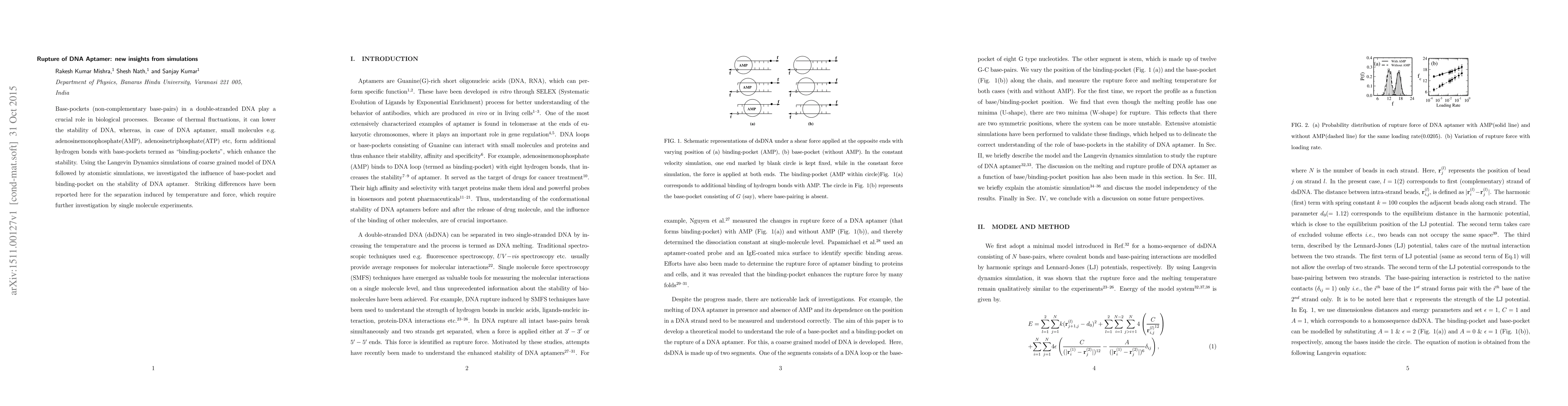 This study uses Langevin Dynamics and atomistic simulations to explore how base-pockets and binding-pockets in DNA aptamers affect their stability. It reveals significant differences in stability changes under temperature and force, suggesting potential for further investigation via single molecule experiments.