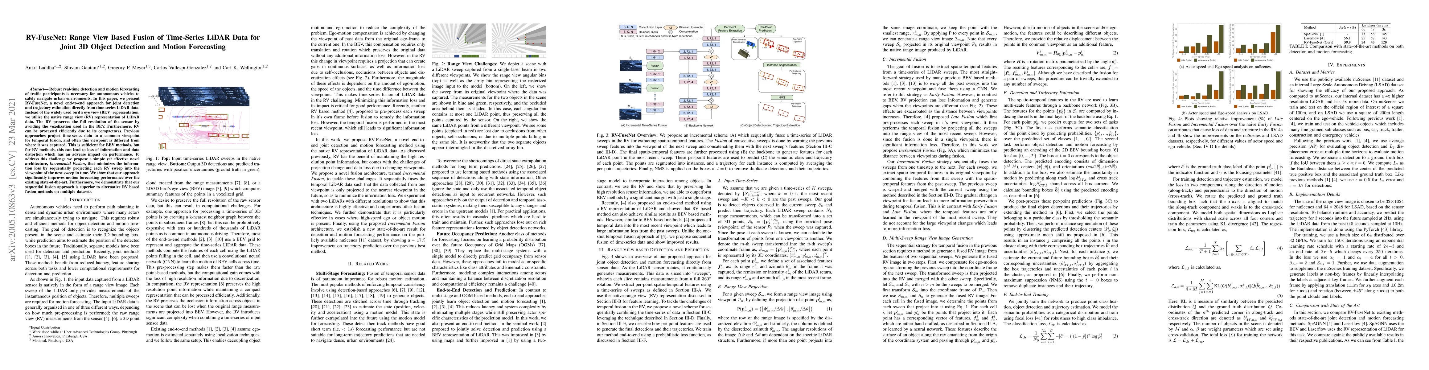 RV-FuseNet presents an innovative end-to-end method for simultaneous 3D object detection and motion forecasting using time-series LiDAR data in its native range view format, enhancing efficiency and accuracy over traditional bird's eye view methods. The proposed Incremental Fusion architecture minimizes information loss during temporal data fusion, significantly improving motion forecasting performance.