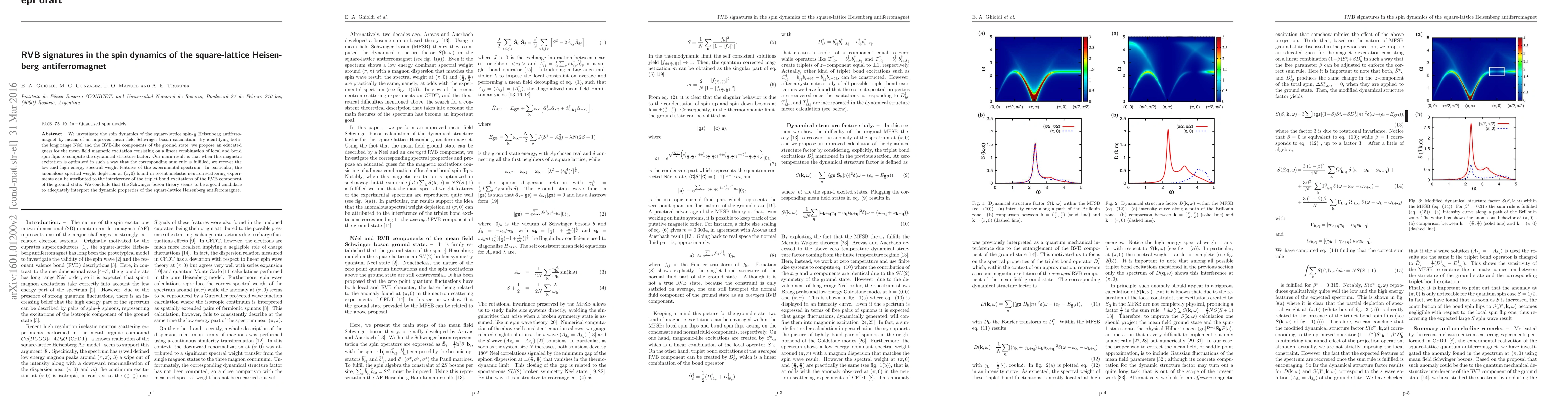 This paper uses an improved mean field Schwinger boson calculation to study the spin dynamics of the square-lattice Heisenberg antiferromagnet, identifying both N\'eel and RVB-like components. The optimized mean field triplet excitation model accurately reproduces experimental spectral features, including anomalous spectral weight depletion, suggesting the theory's adequacy for interpreting dynamic properties.