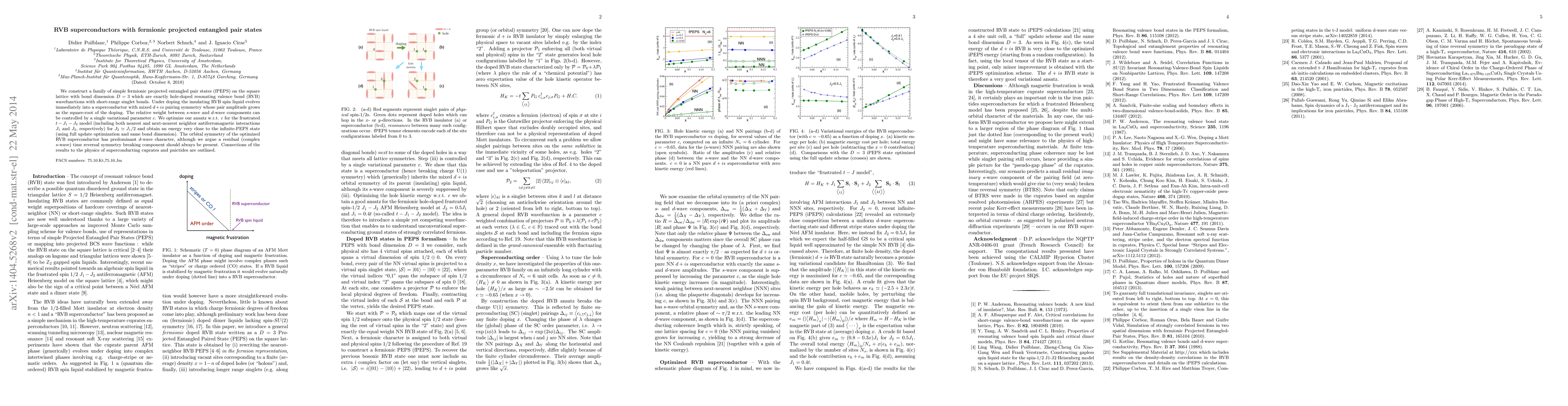 This paper constructs a family of fermionic projected entangled pair states (fPEPS) that represent exactly doped resonating valence bond (RVB) wavefunctions evolving into superconductors with $d+is$ pairing symmetry. The study optimizes these states for the $t-J_1-J_2$ model, finding a superconducting phase with predominant d-wave symmetry and connections to cuprate and pnictide superconductors.