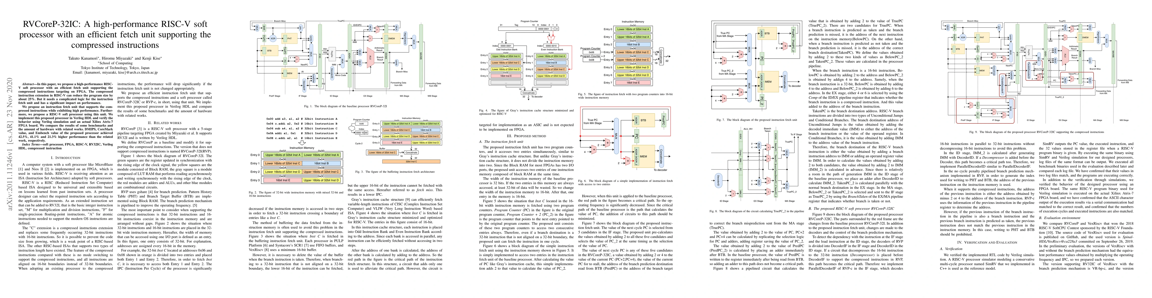 This paper introduces RVCoreP-32IC, a high-performance RISC-V soft processor with an optimized fetch unit for compressed instructions, achieving notable improvements in performance and efficiency over existing solutions. Benchmark results show significant enhancements in DMIPS, CoreMark, and Embench values.