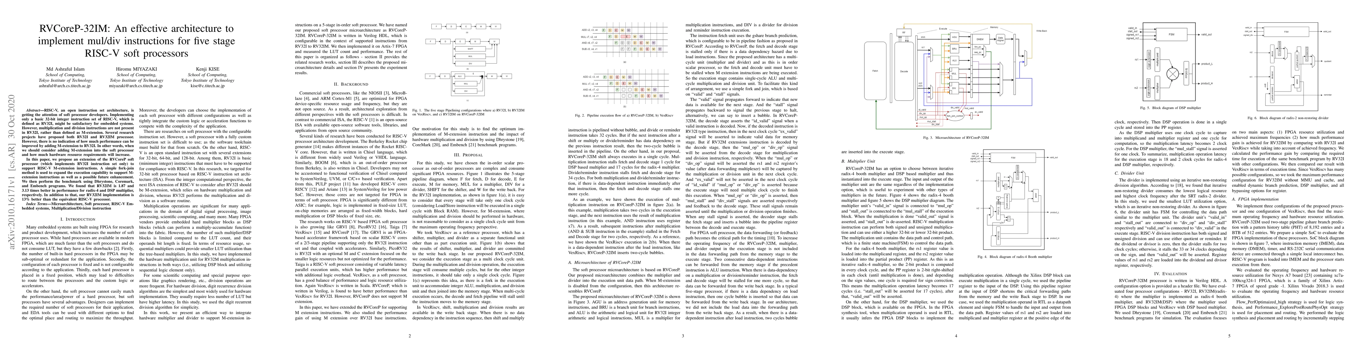 A multi-cycle execution unit was proposed to support M-extension based on a simple fork-join structure in the execute stage at minimal overhead.