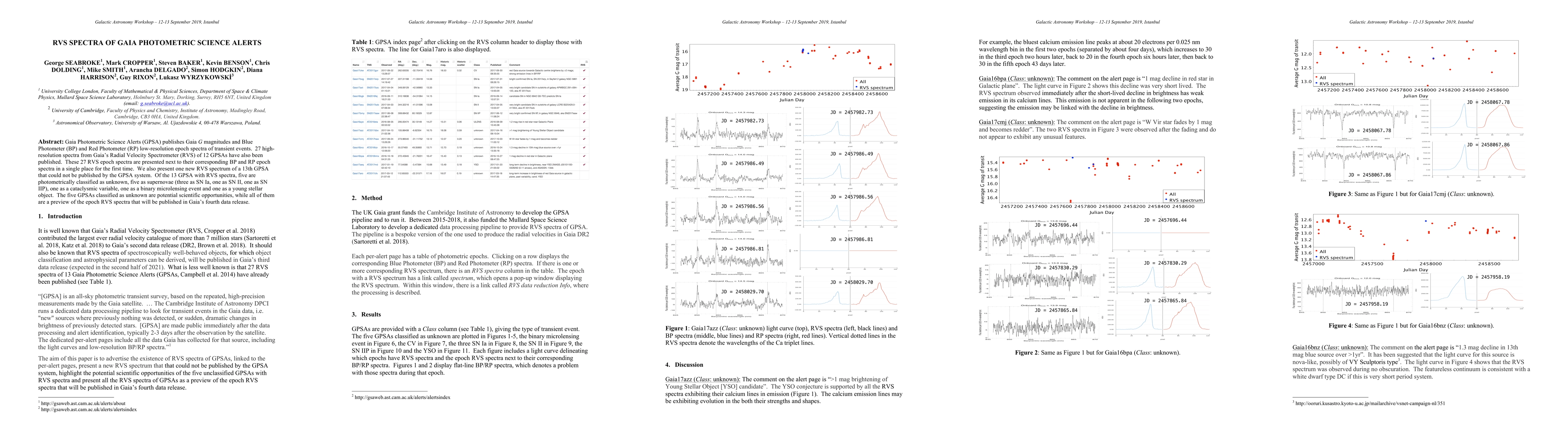 Gaia Photometric Science Alerts (GPSA) publishes Gaia G magnitudes and Blue Photometer (BP) and Red Photometer (RP) low-resolution epoch spectra of transient events. 27 high-resolution spectra from Gaia's Radial Velocity Spectrometer (RVS) of 12 GPSAs have also been published. These 27 RVS epoch spectra are presented next to their corresponding BP and RP epoch spectra in a single place for the first time. We also present one new RVS spectrum of a 13th GPSA that could not be published by the GPSA system. Of the 13 GPSA with RVS spectra, five are photometrically classified as unknown, five as supernovae (three as SN Ia, one as SN II, one as SN IIP), one as a cataclysmic variable, one as a binary microlensing event and one as a young stellar object. The five GPSAs classified as unknown are potential scientific opportunities, while all of them are a preview of the epoch RVS spectra that will be published in Gaia's fourth data release.