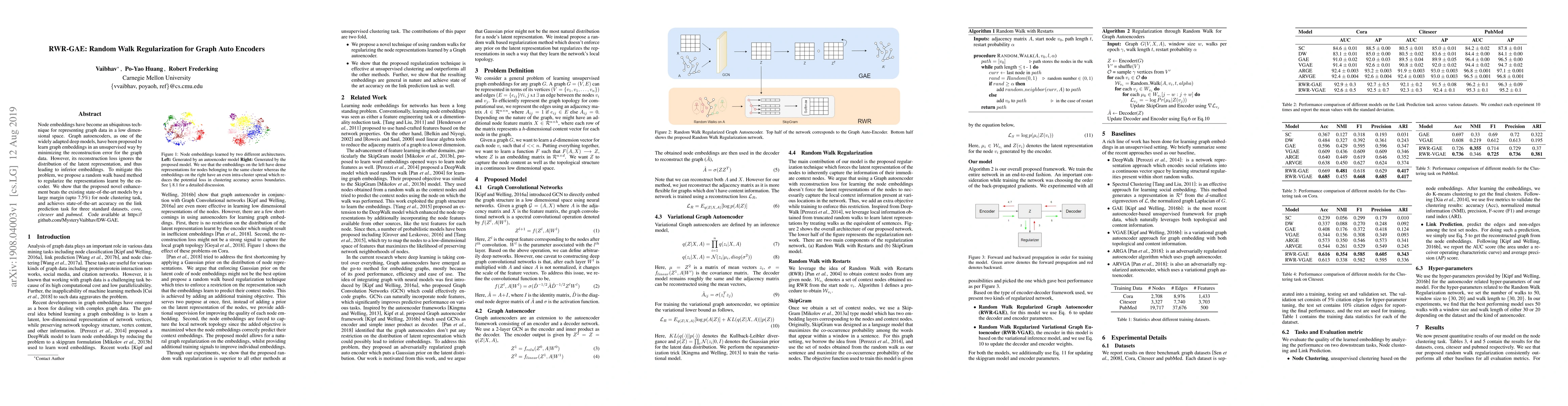 Node embeddings have become an ubiquitous technique for representing graph data in a low dimensional space. Graph autoencoders, as one of the widely adapted deep models, have been proposed to learn graph embeddings in an unsupervised way by minimizing the reconstruction error for the graph data. However, its reconstruction loss ignores the distribution of the latent representation, and thus leading to inferior embeddings. To mitigate this problem, we propose a random walk based method to regularize the representations learnt by the encoder. We show that the proposed novel enhancement beats the existing state-of-the-art models by a large margin (upto 7.5\%) for node clustering task, and achieves state-of-the-art accuracy on the link prediction task for three standard datasets, cora, citeseer and pubmed. Code available at https://github.com/MysteryVaibhav/DW-GAE.
