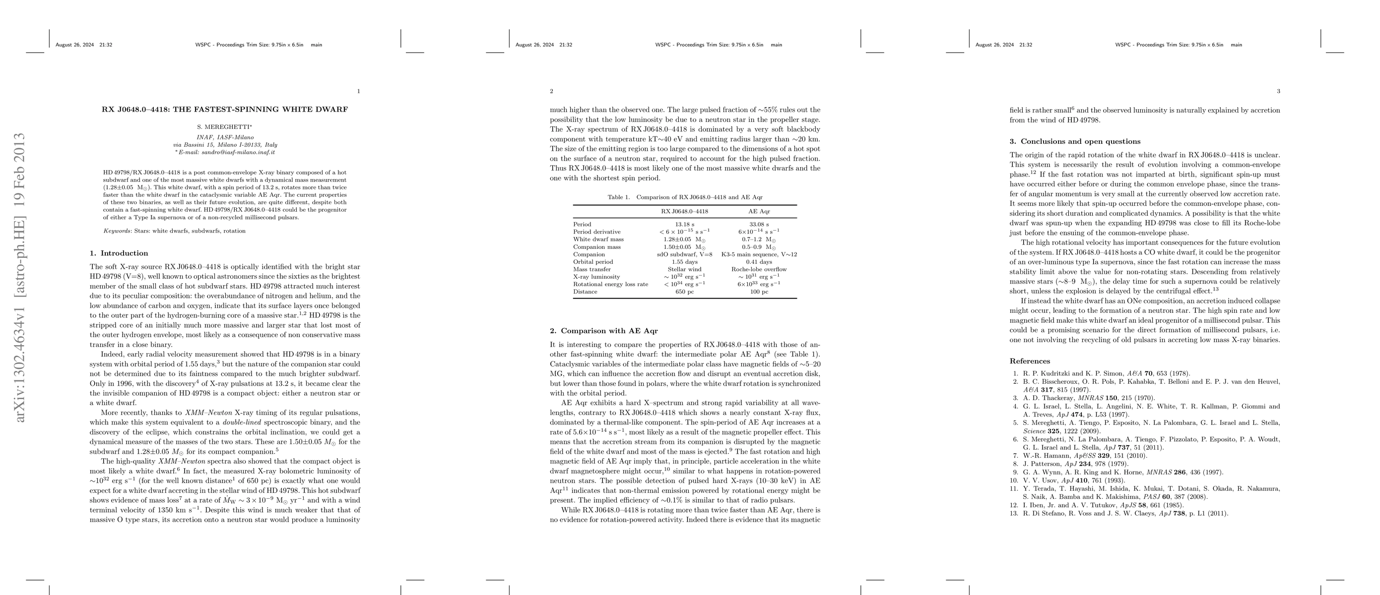 RX J0648.0-4418 features a rapidly spinning white dwarf with a spin period of 13.2 seconds, making it the fastest-spinning known. This white dwarf could evolve into either a Type Ia supernova or a non-recycled millisecond pulsar.